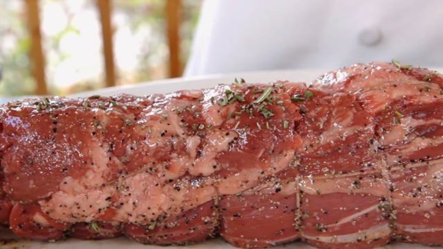- With butcher's twine, truss the beef tenderloin every 3 inches so it can get an even sear.