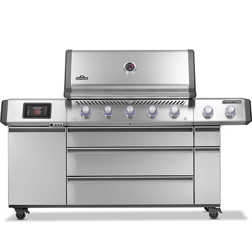 | Best For | For grillers who want Napoleon’s premier sleek design, enhanced Jetfire Ignition, superior heat retention, and reduced flare-ups. | Ideal for anyone who loves Napoleon premier grills, now upgraded with WiFi and Bluetooth connectivity for effortless monitoring anywhere nearby. | Best for those who demand the best of the best—enjoy all the Prestige benefits plus a built-in smoker box, cutting board, ice bucket, and a pre-assembled cart for ultimate convenience. | Perfect for serious outdoor cooks and entertainers who want professional-grade performance, smart technology, and luxury design in one statement-making grill |