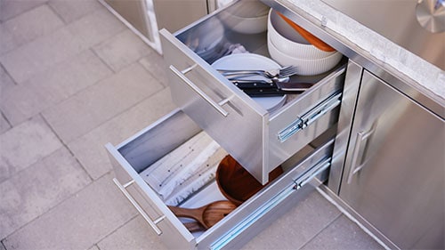 - Outdoor Kitchen Packages make it easy to purchase matching appliances and storage for a ready-to-build outdoor kitchen