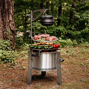 Make gathering around the fire a mouthwatering experience with the Breeo Y Series Wood-Burning Fire Pit. This Firemaster Bundle includes the fire pit, Outpost™ Grill, SearPlate™ Griddle, Kettle, Kettle Hook, Sear Disc and Transit Case Shop Breeo Y Series Wood-Burning Fire Pit