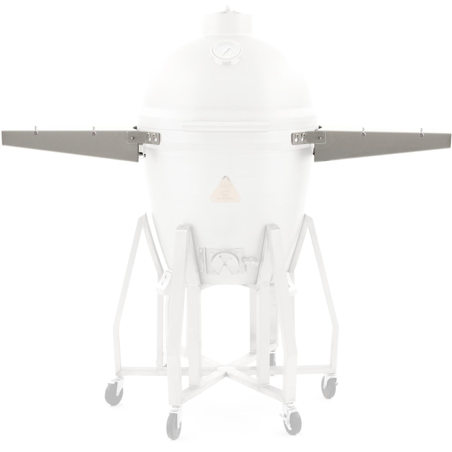 Hey Zack! The side shelves are not foldable, but they can be removed by removing the siding from the mounting screws on the Kamado. Hope this information helps!