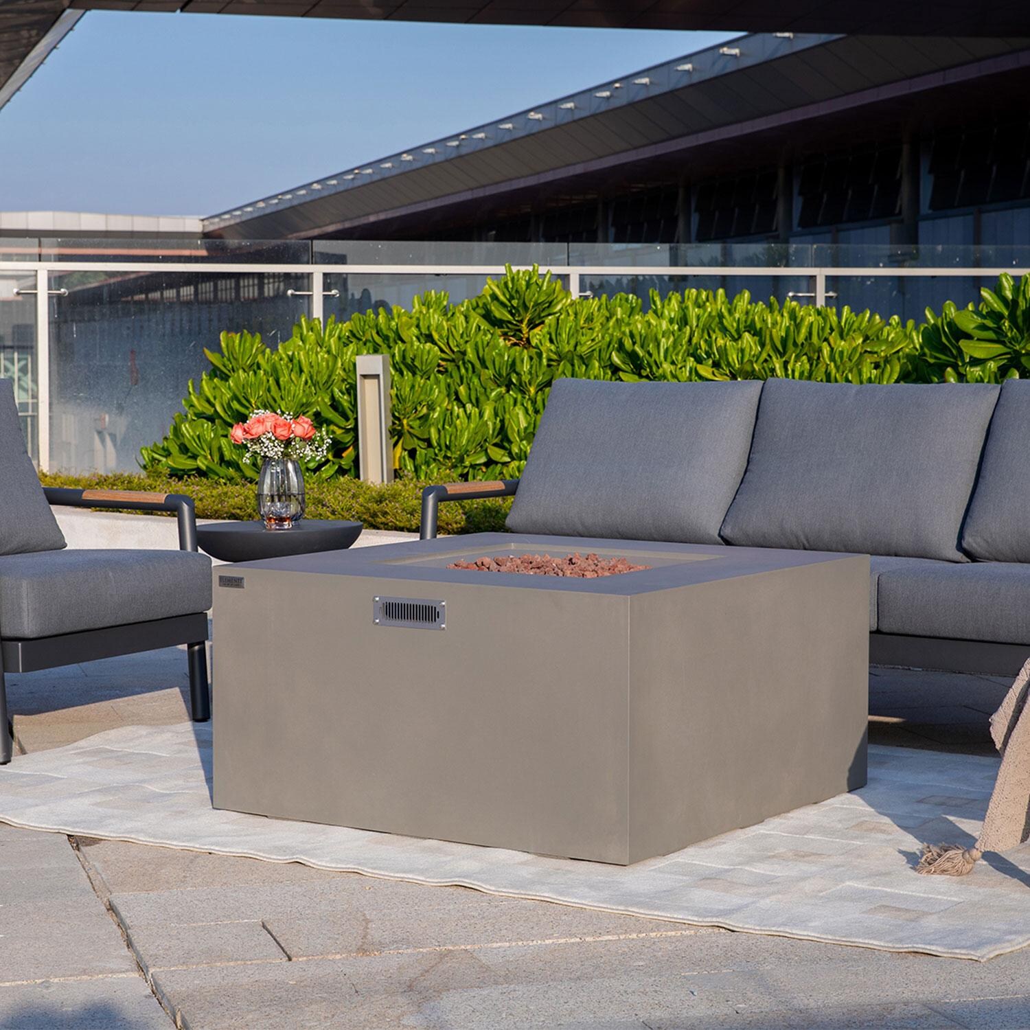 Outdoor gas fire pits are available in a variety of finishes and materials. Glass Fiber Reinforced Concrete (GFRC) is very common and very durable and can be found in many shapes and sizes - but typically rectangular or square. They do tend to be somewhat pricier, but they will give you many years of use. Stainless Steel is also popular, durable, and long-lasting. Aluminum and cast aluminum work great in outdoor applications – it’s low-maintenance and won’t rust. Other materials include steel, copper, polyresin, and faux stone.