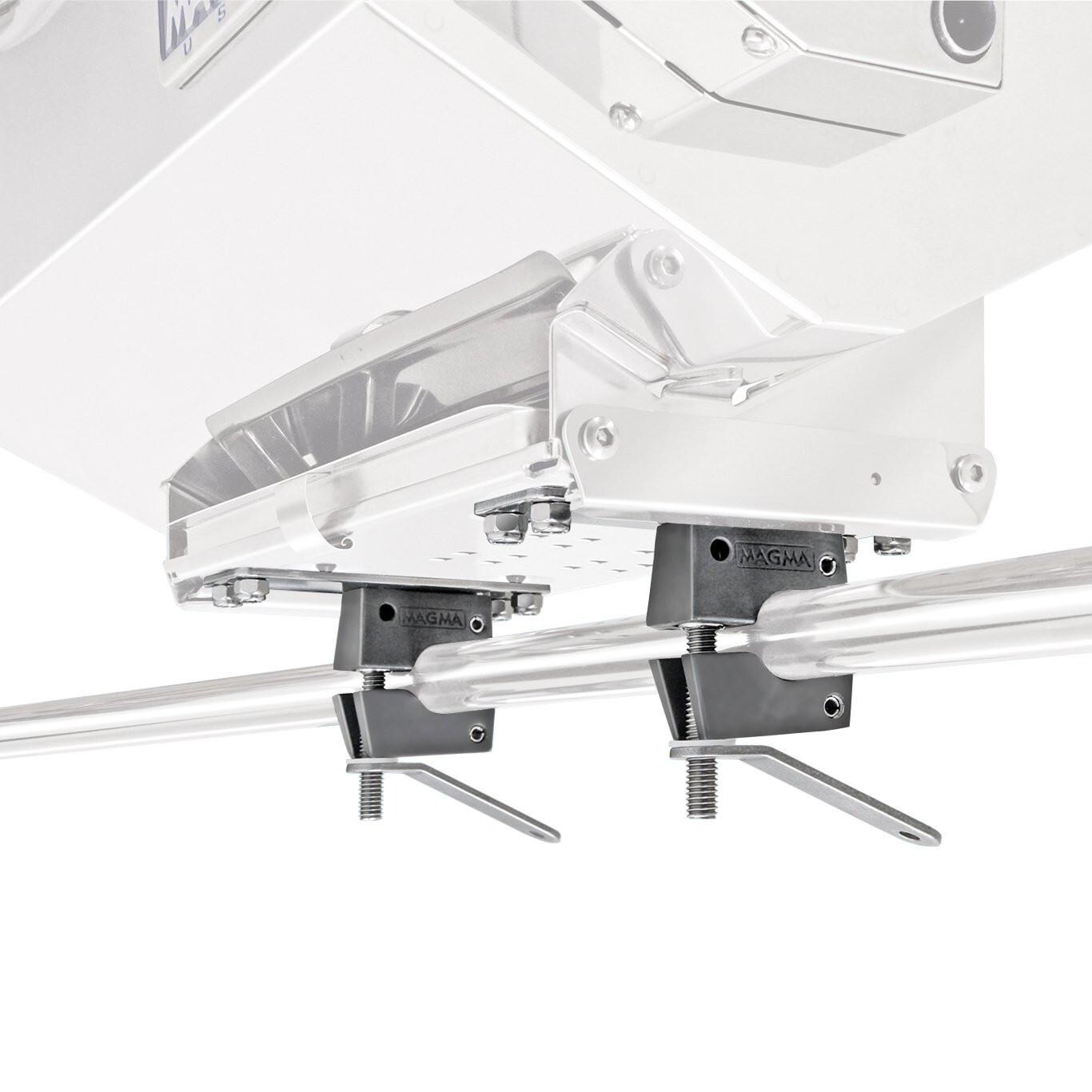 For the finest grills on the sea, Magma Products comes to mind for many. But the rugged waves beneath your boat aren't kind to loose equipment — so you'll probably need to consider how you’ll secure that grill before you head off to enact your unyielding patience against the local underwater population. But before you crack out those dusty old ratchet straps (or the welding kit), consider that boat grill mounting options are already out there… and made by Magma! Who knew? Well, if you want to install boat grill mounting on your vessel, simply check out our Magma grill mount comparison chart and pick from our long line of appropriate options: rectangular rod holder mounts, round rail mounts, deck mounts, and more! We even offer convenient, portable on-shore mounts to bring your cook chamber ashore for some serious seaside searing.