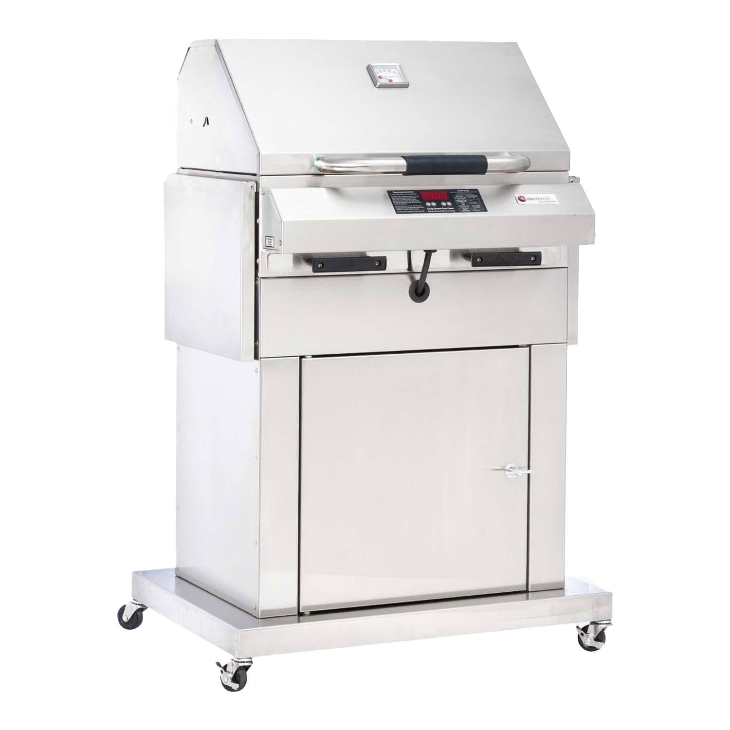 - Stainless steel cooking grids and removable grease trays for simple cleanup