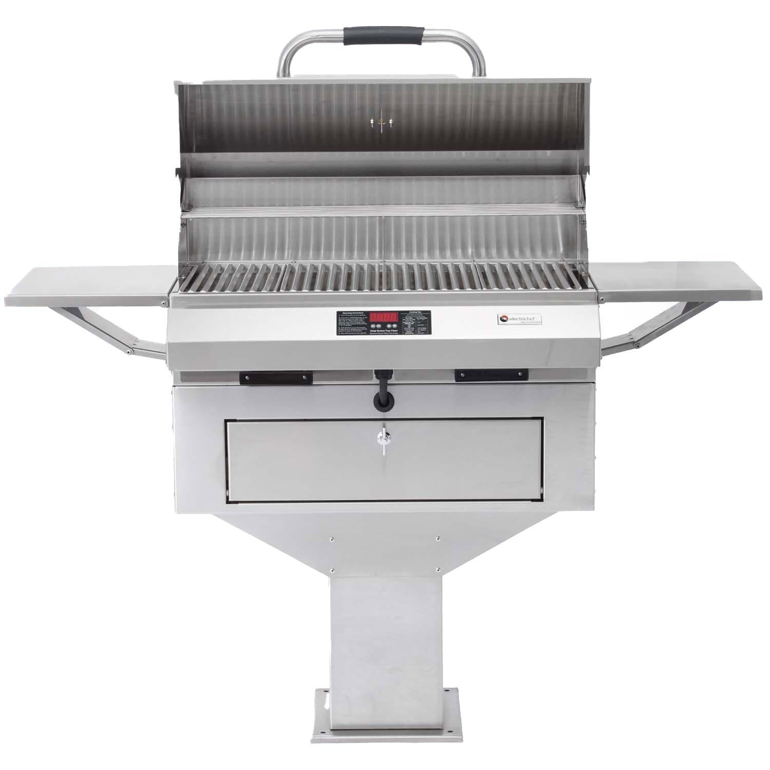 - Stainless steel cooking grids and removable grease trays for simple cleanup