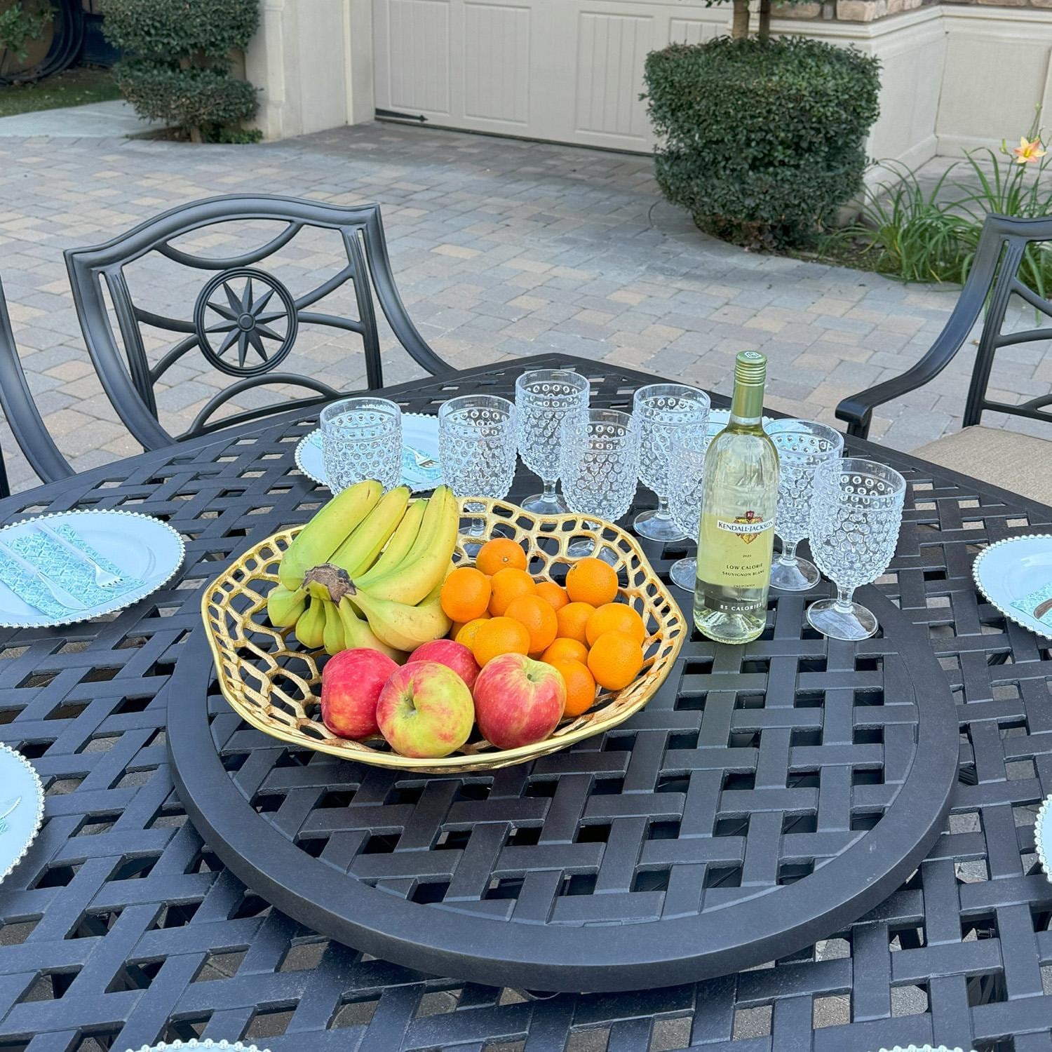 We have a round patio table that seats six. With that size table a Lazy Susan is a must. I was a little worried about this size being too big, but it is perfect. We can put a regular sized place mat at each seat and the Lazy Susan fits just outside the place mat area. It is a little noisy when you first deploy, but I did some silicon spray (not WD-40), and now it is a bit more quiet.