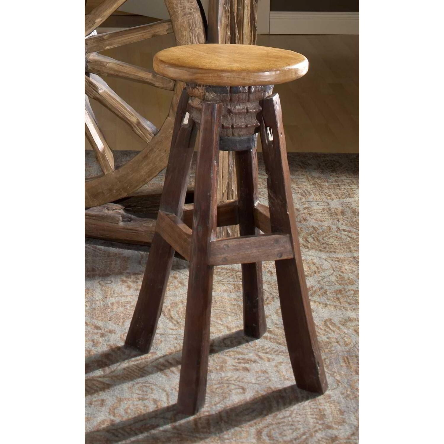 The Groovy Stuff Cattle Barons Teak Wood Bar Chair - TF-777-30. Constructed from reclaimed teak wood, the Cattle Baron s Lodge Chair features classic lines in a beautifully rustic design. This stool has a smooth, circular top. The four legs have been cross braced for maximum stability. This one-of-a-kind piece suits any casual decor and blends well with natural wood tables. DUE TO THE UNIQUE CRAFTING, THIS ITEM MAY VARY IN SHAPE, SIZE AND COLOR. Dimensions (in inches): 13 W x 13 D x 30 H.