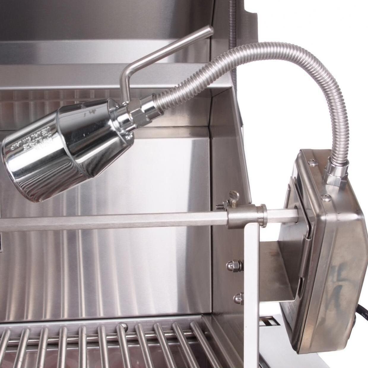 - Rotisserie allows you to slow roast while the adjustable halogen light can be aimed exactly where you need it