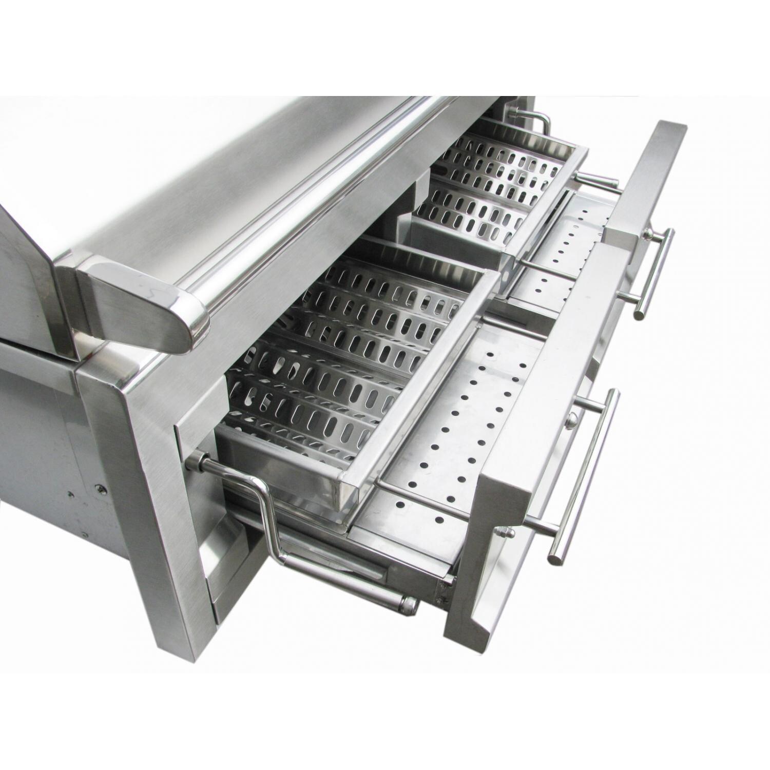 - Top trays with pass-thru heat flavorizer racks for smoking with your favorite wood