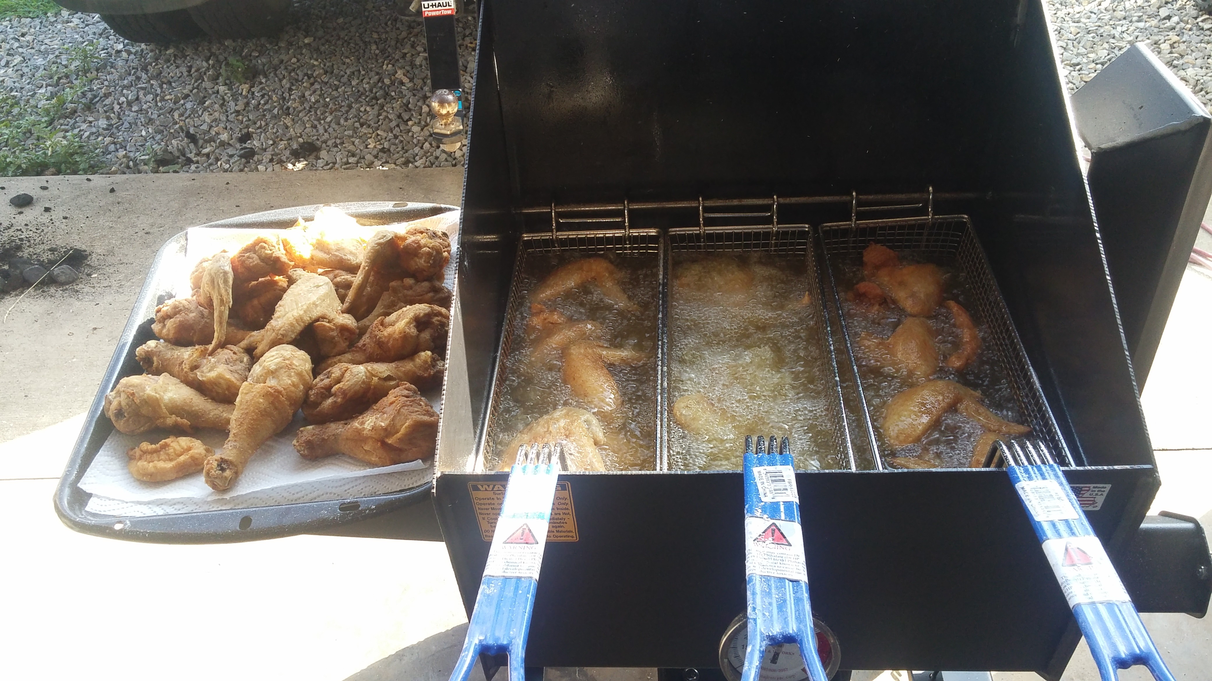 - Sturdy carbon steel basket can hold one turkey or two chickens