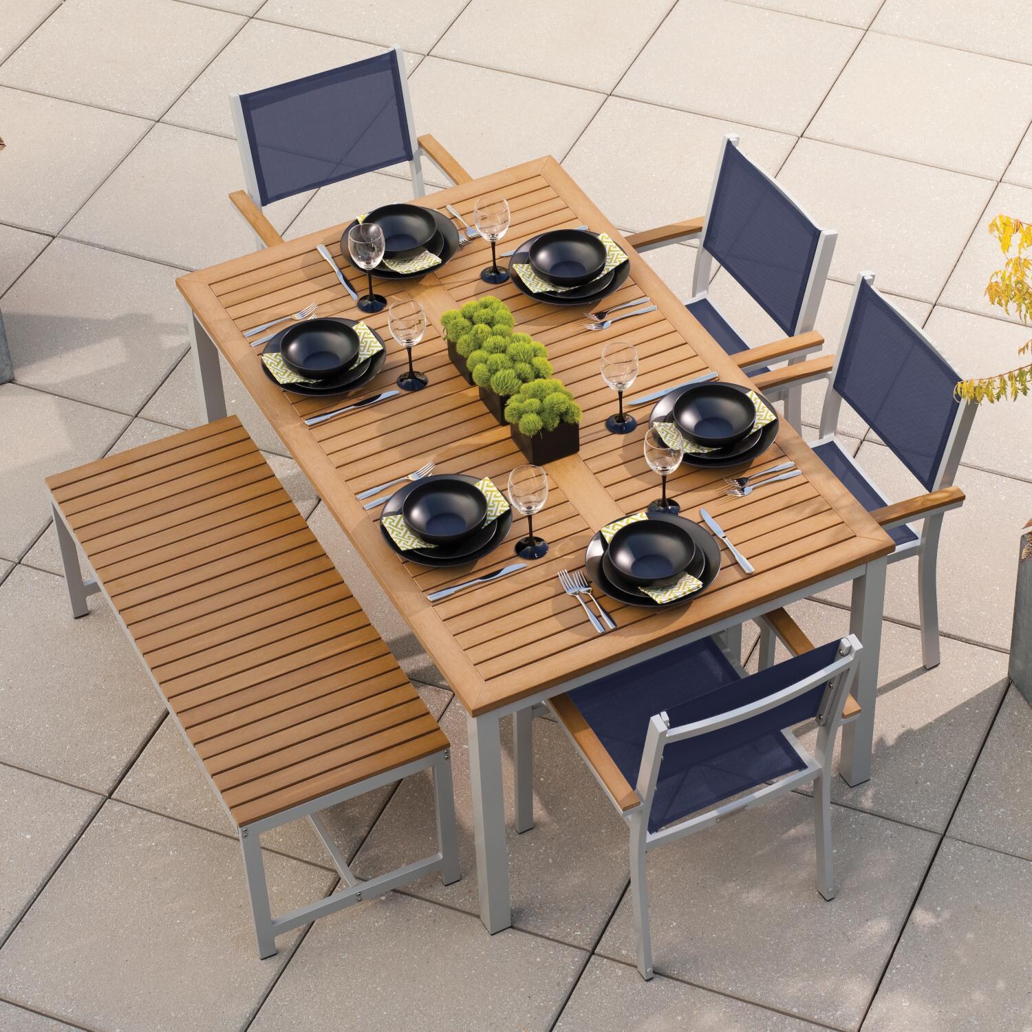 - Slatted tabletop serves all-weather durability and allows rain to pass through