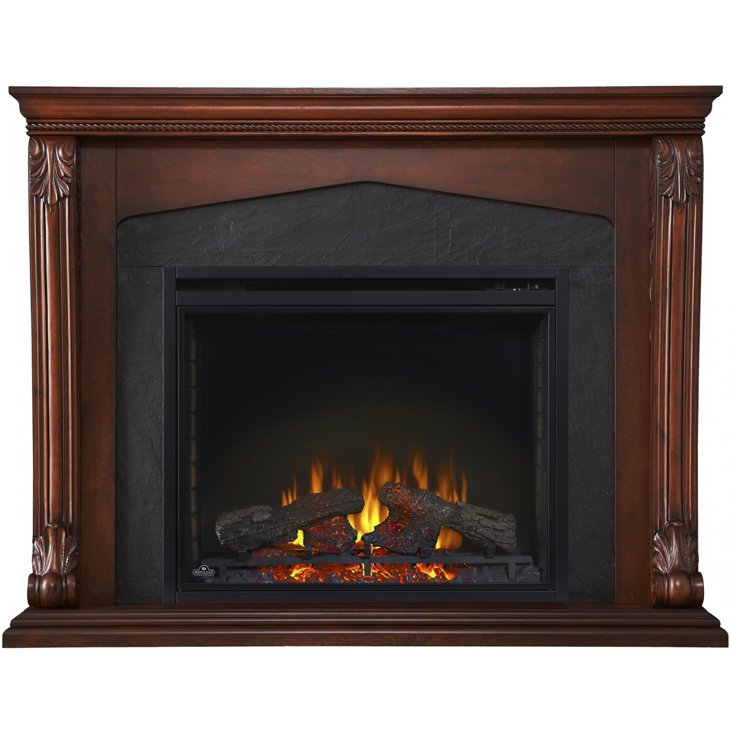- Decorative rope molding, slate surround and a burnished walnut finish bring an elegant look to any room in your home