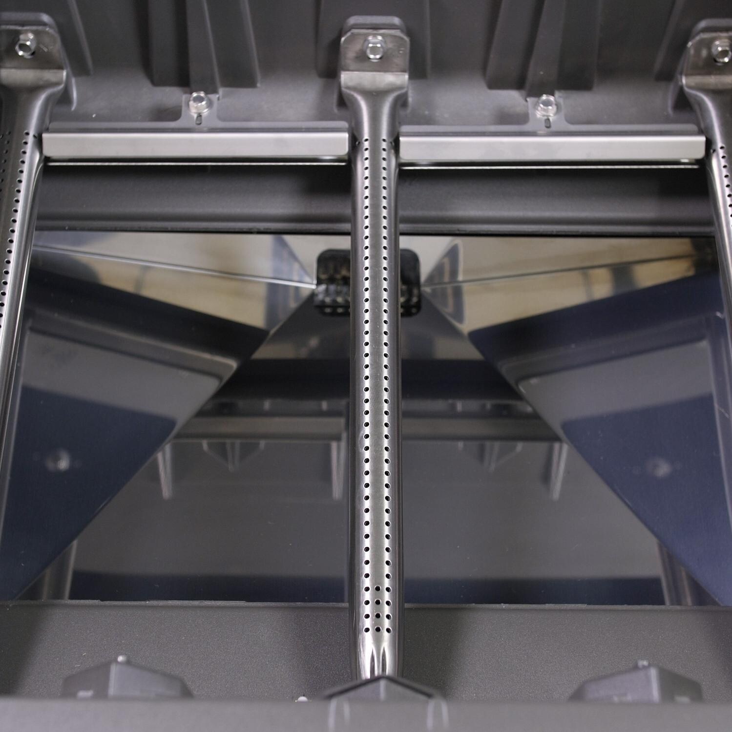 - Stainless steel sear plates distribute heat, control flare-ups, vaporize drippings and add flavor