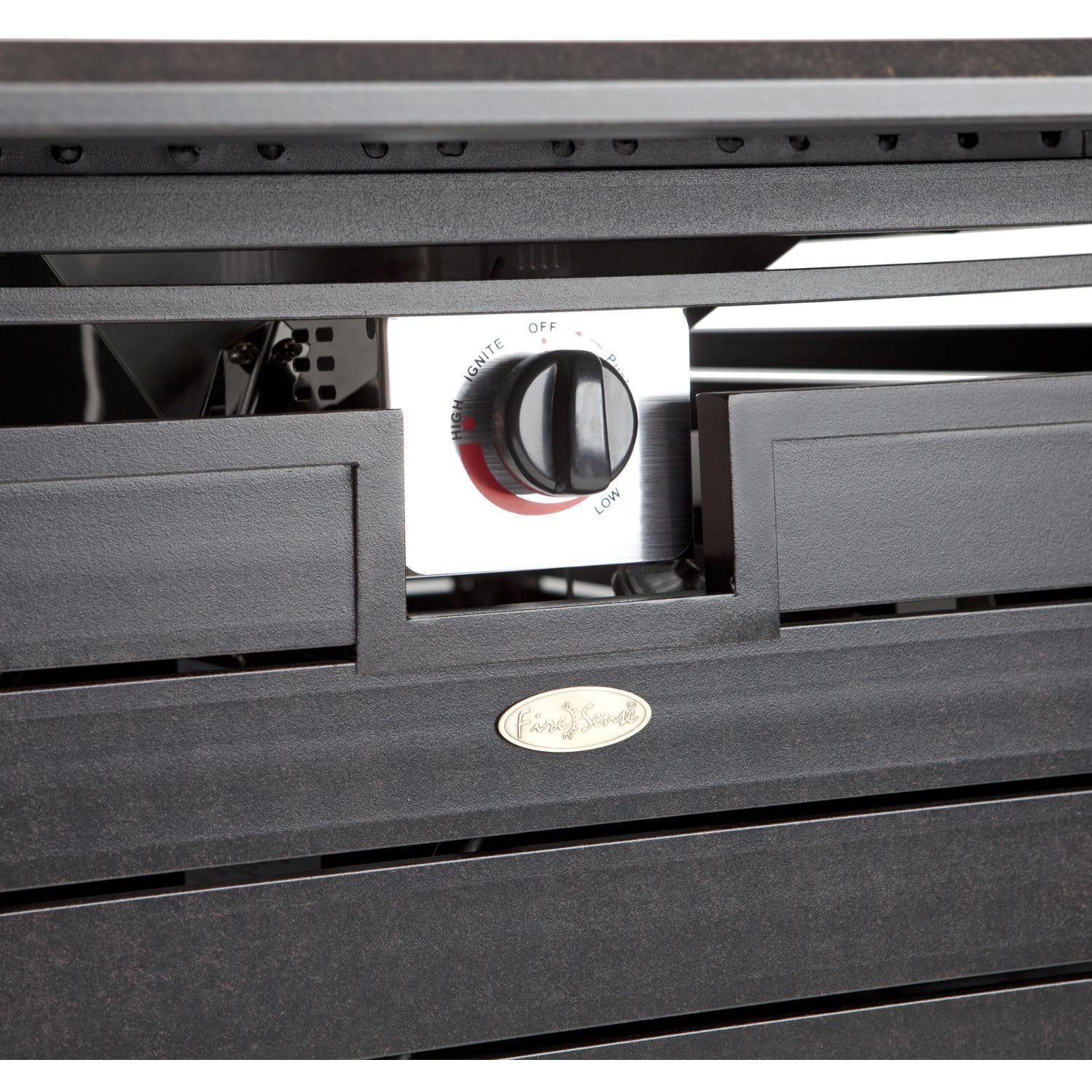 The 40,000 BTU stainless steel burner produces a beautiful full flame that is accentuated by the included clear fire glass. The easy to use, push to turn control knobs makes starting the fire simple.