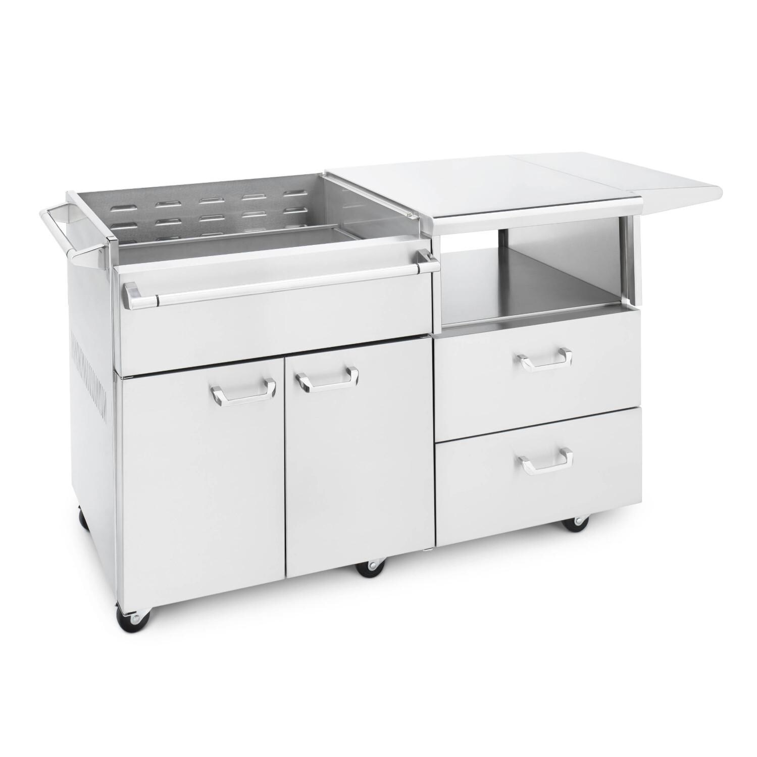 - Three drawers and two doors provide ample storage for all your grilling accessories
