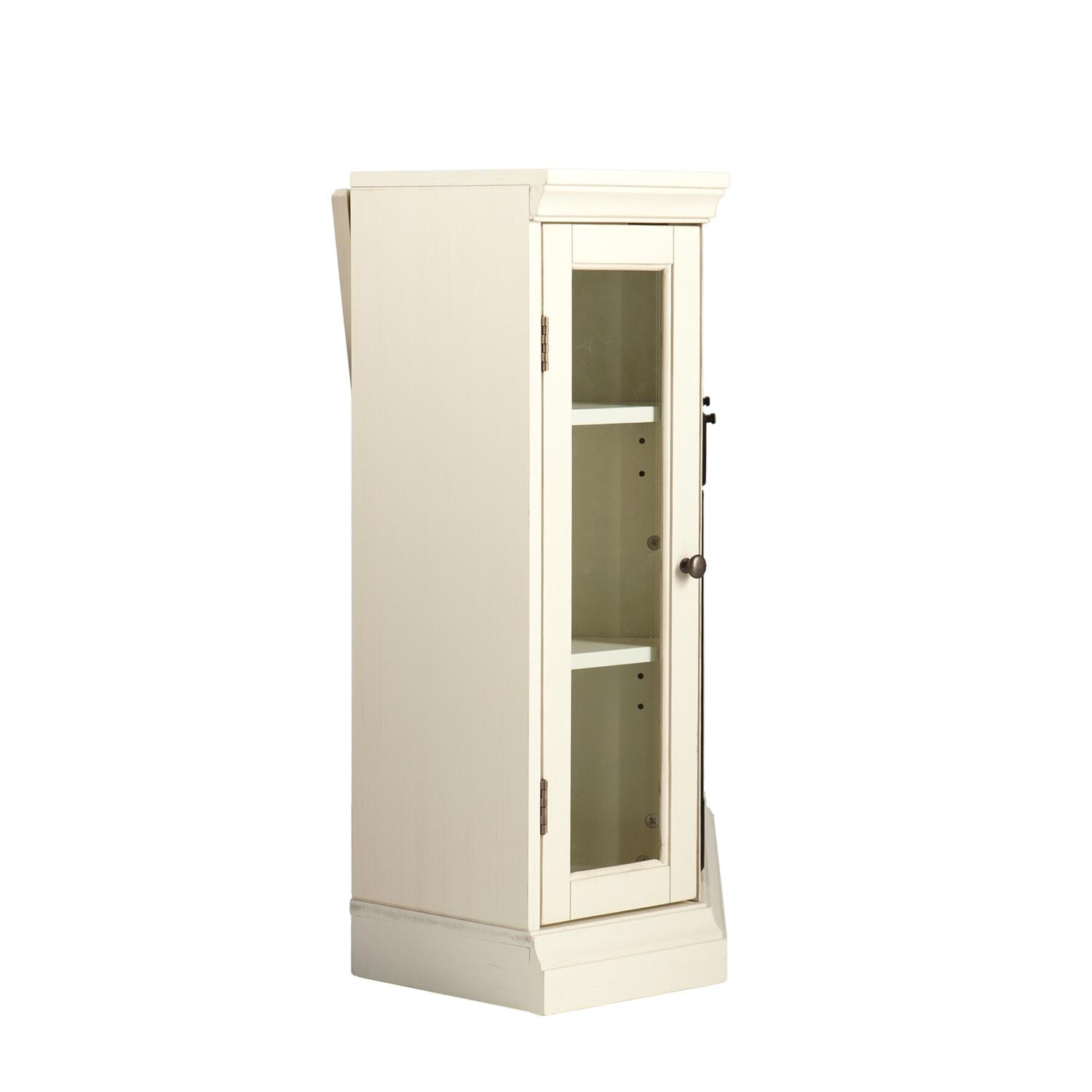 Modern design and functionality along with versatility come together with the Claremont Electric Fireplace Media Console by Southern Enterprises. The media console features a warm ivory finish and triangular glass cabinets for added style and storage. The cabinets also flow perfectly with the collapsible corner attachment should you choose to install the fireplace in a corner. Extra storage is provided with the top shelf to accommodate all of your media accessories. The energy efficient LED firebox features realistic, multicolor flames and a glowing ember bed that are complemented by a brick interior for a true wood burning fireplace look. Heat output can be adjusted between four settings with the provided remote, or can be turned off to enjoy the ambiance of a fireplace without the heat. Safety features include automatic shutoff and glass that remains cool to the touch.