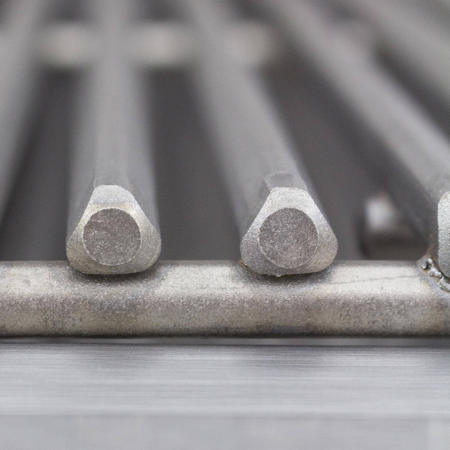- Patent pending triangle-shaped cooking grates rods produce beautiful sear marks across grilling surface