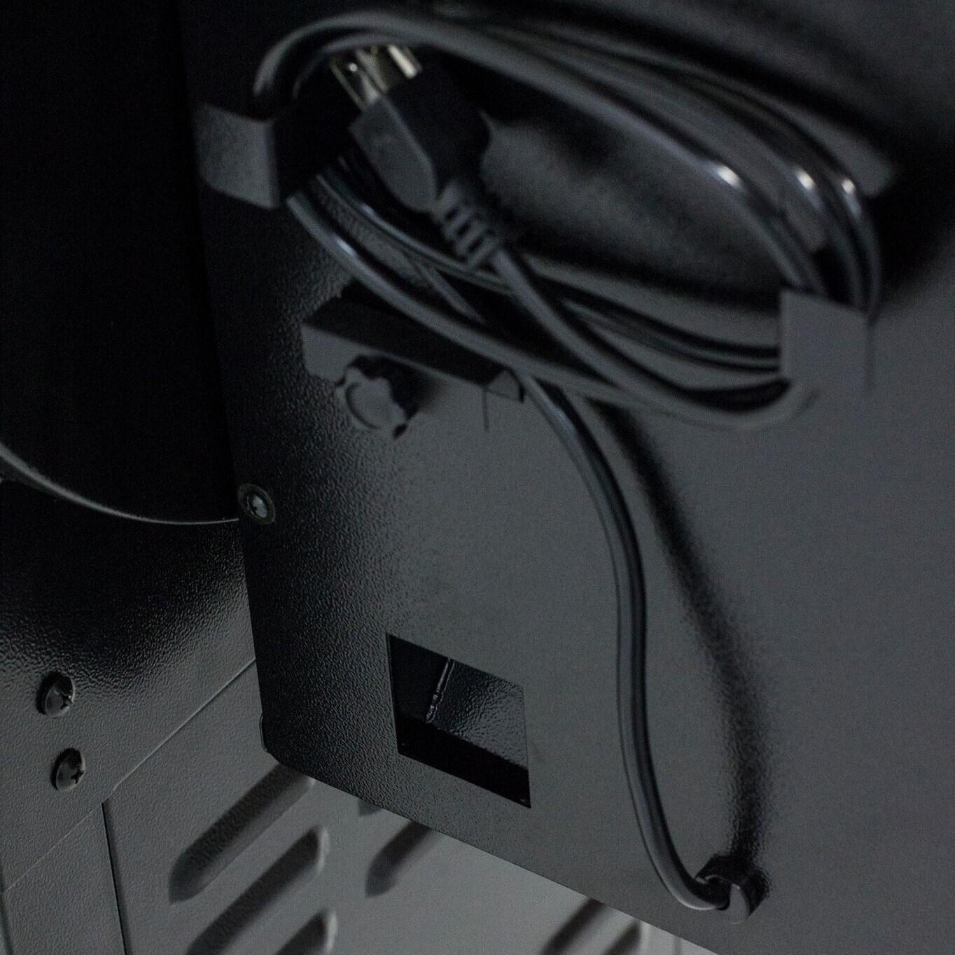 • Includes an enclosed cabinet, a removable grease tray, and mounting points for a front shelf