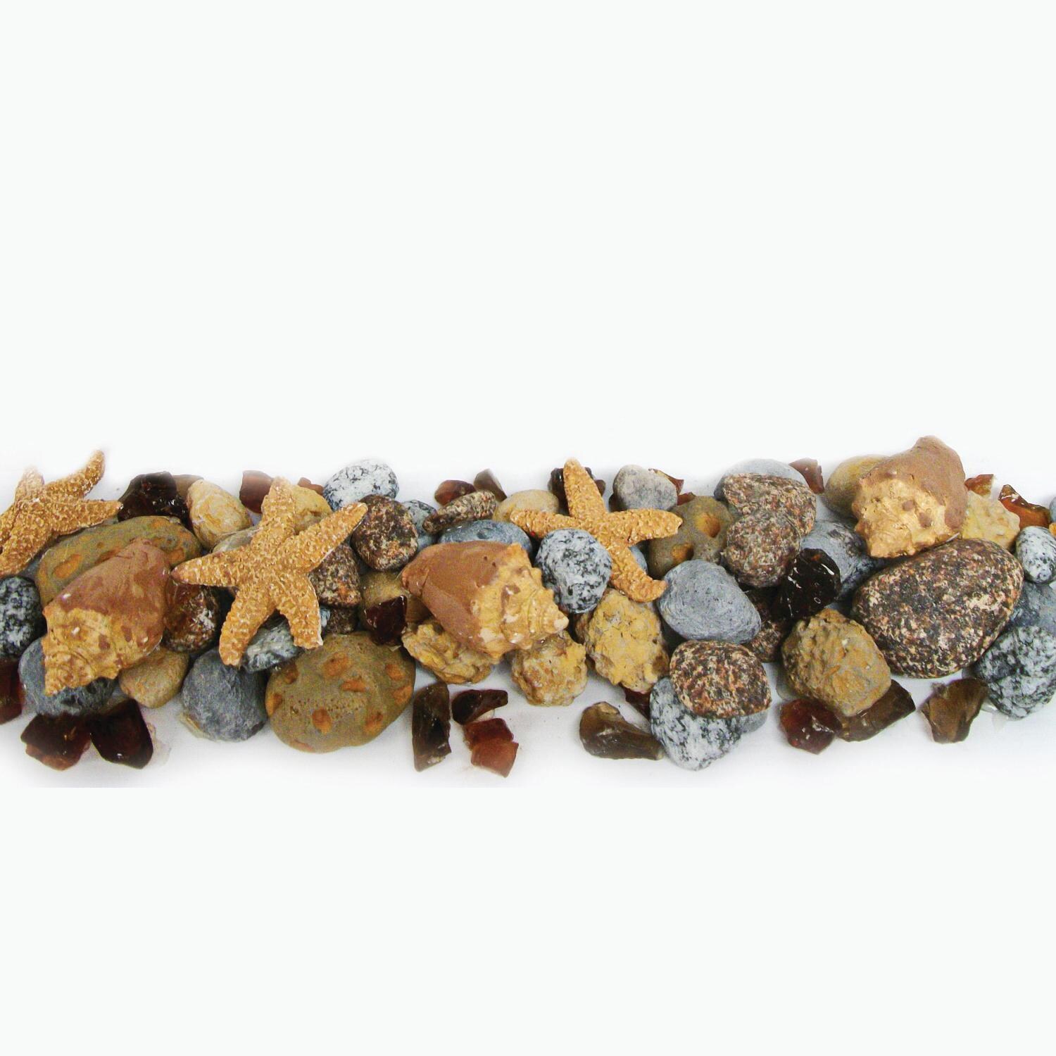 With Blue Whale mixed media in your gas firepit or vented gas fireplace, your home will feel like a beach-side resort. This luxurious media is a combination of Starfish, Sea Shells, Full Moon Volcanic Stone, Full Moon Holey Stones, Saturn Moon Stones, Huron Beach Stones, Dewy Stones, Full Moon Stones, and Ginger fire glass. The ceramic design can withstand temperatures of up to 1650F.