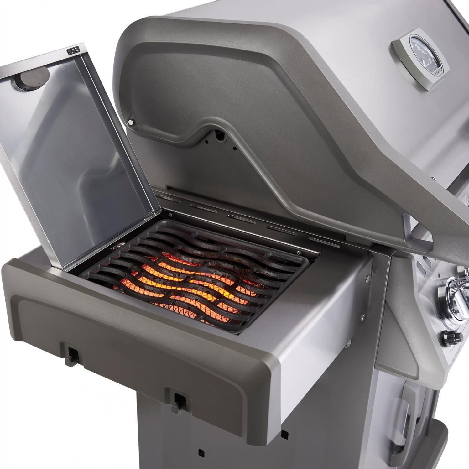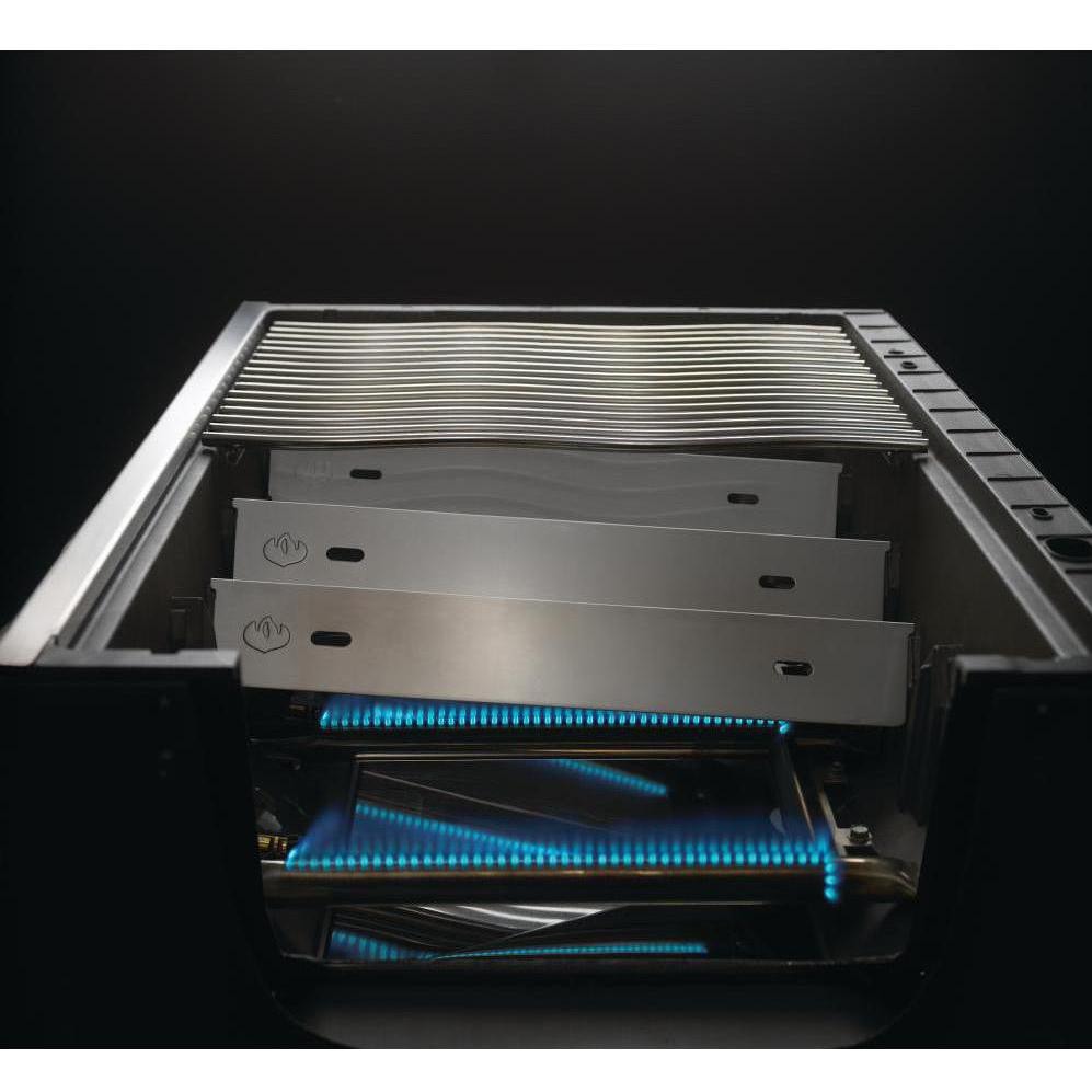 - Dual-Level stainless steel sear plates to vaporize drippings, control flare-ups, and keep food moist