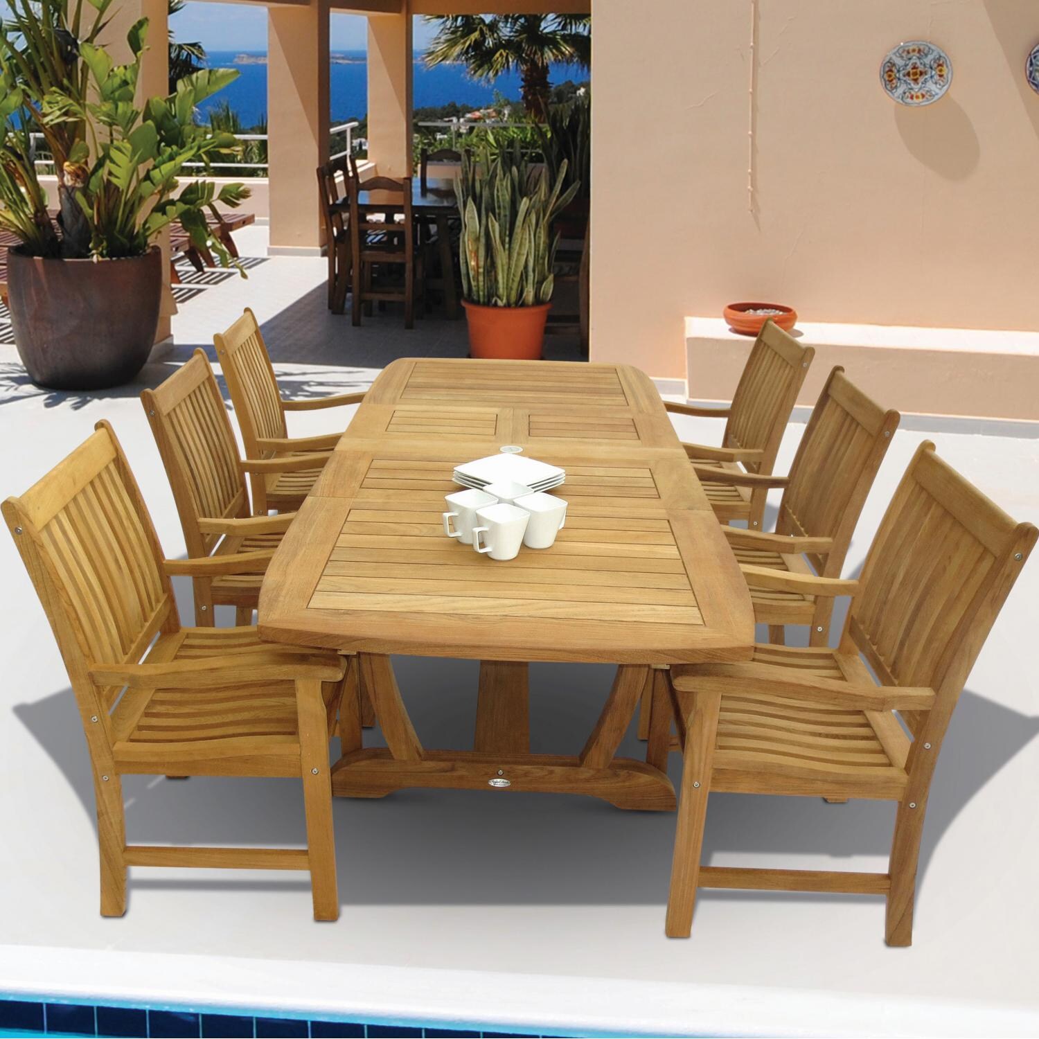 - Set Includes: Dining Table, 8 Dining Arm Chairs