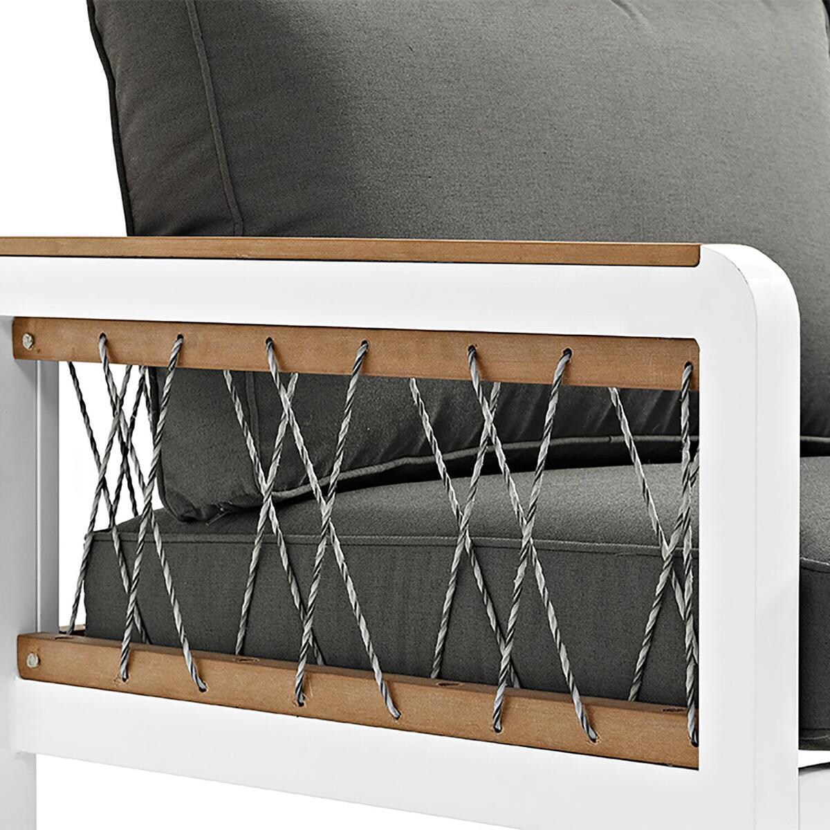 - Teak and cord detailing give the set stylish accents