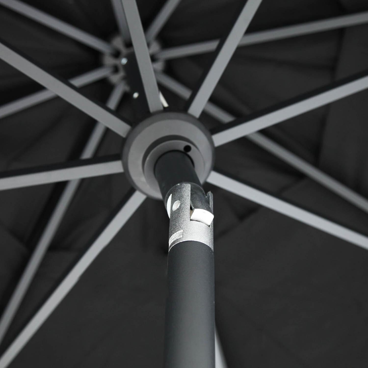 Beautiful, sturdy, well-made 11 foot black patio umbrella. Opens easily. Just know that you must open beyond what you think is maximum capacity in order to engage the tilt mechanism way up near the top of the pole which then tilts very easily. I absolutely love this umbrella!!