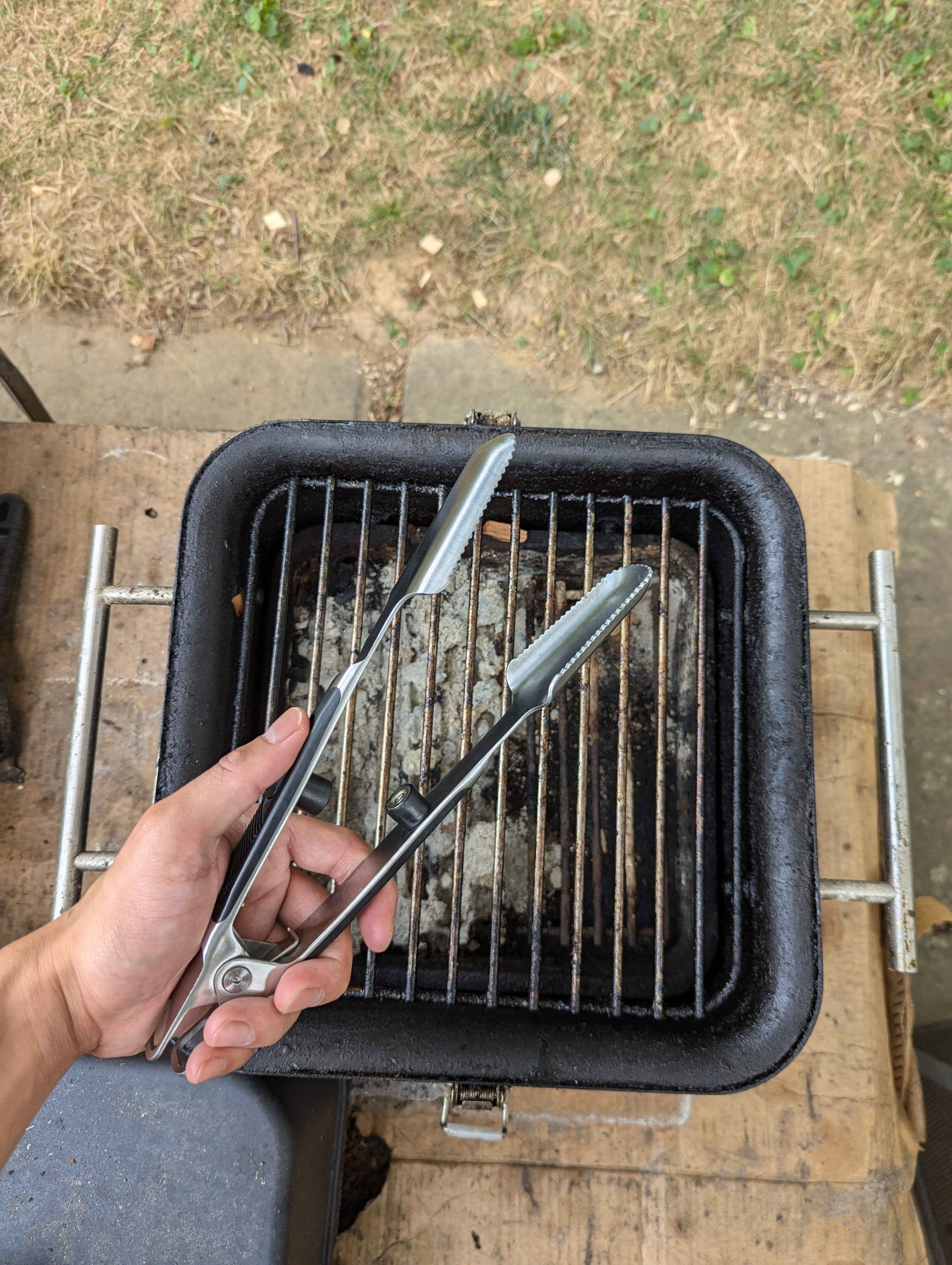 - Tongs feature a patented locking mechanism great for storing or setting to the side