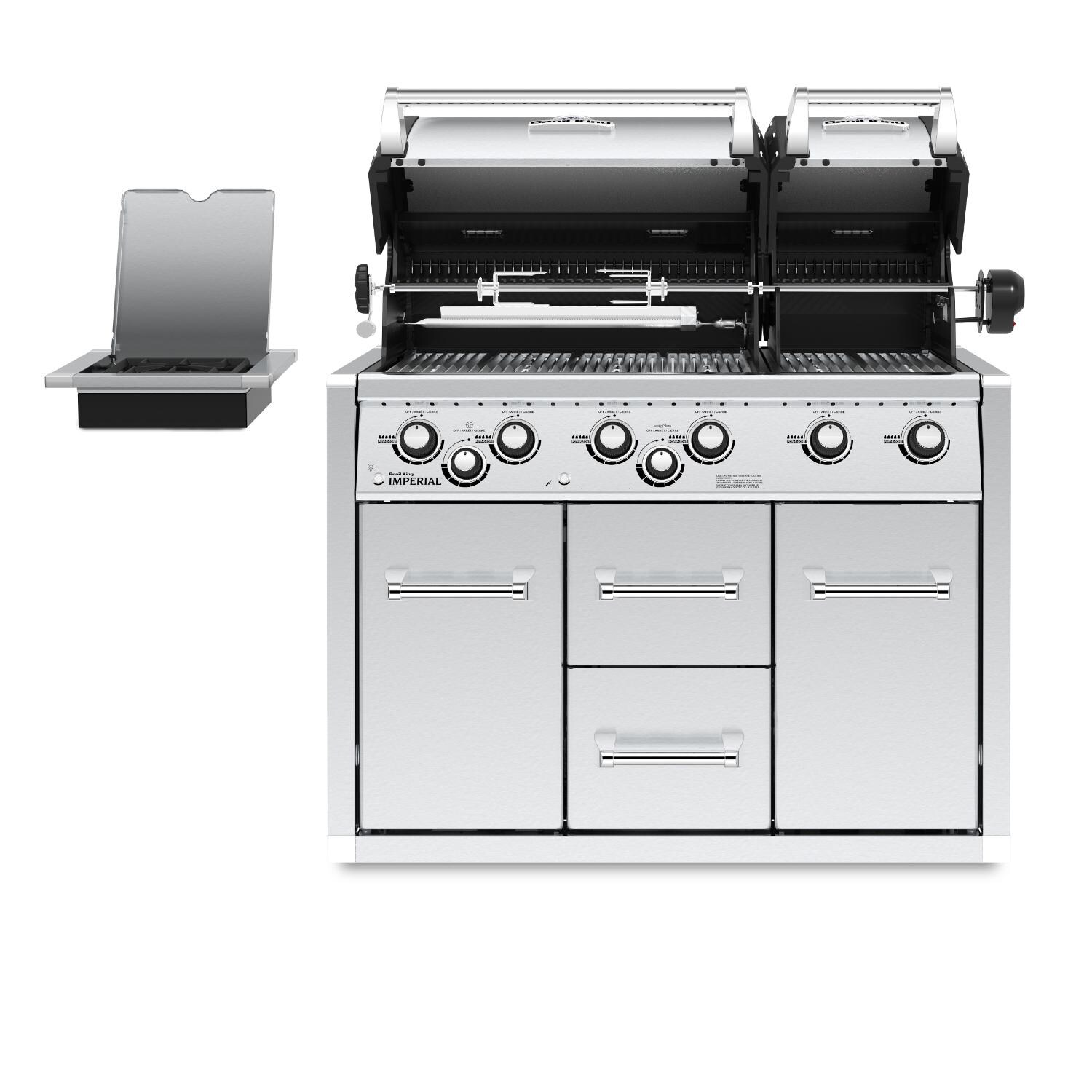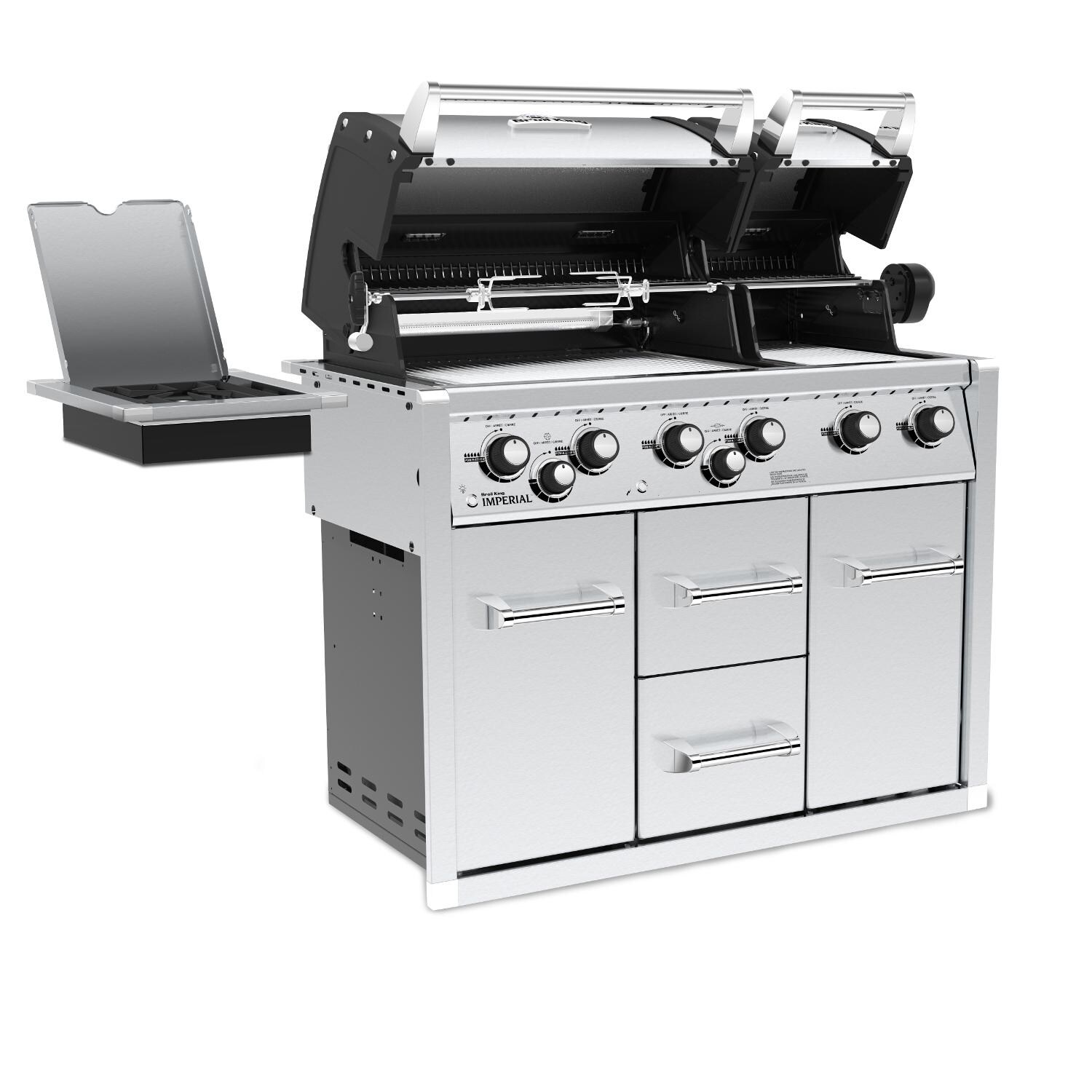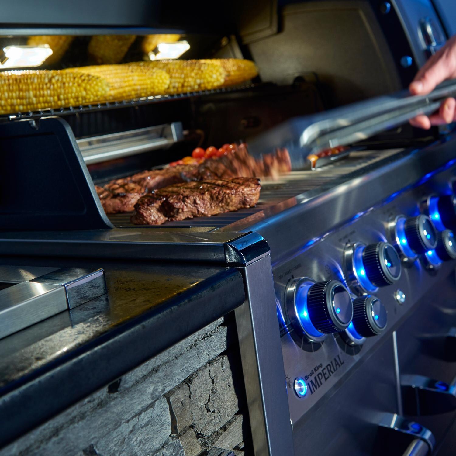 Broil King's Regal and Imperial Series Gas Grills are top of the line for Broil King, especially the Imperial. They are a great value and are loaded with many great features. Some of my favorites include: control knob lights that are great for night time entertaining, storage shelves inside the cart, tool hooks with side shelf bins, and pull out tank drawers for the propane models. The Imperial Series also feature a pull out drawer in the side shelves, as well as interior oven lights.