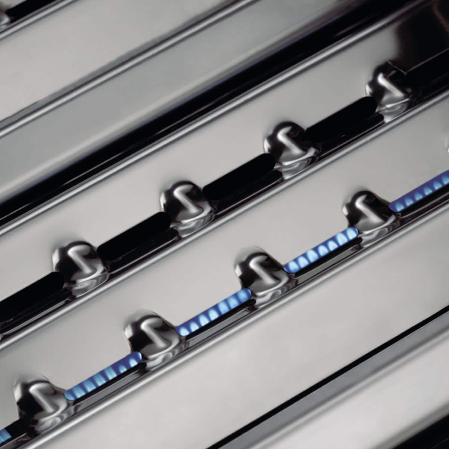• Four stainless steel Dual-Tube burners provide two rows of flame for efficient heat distribution
