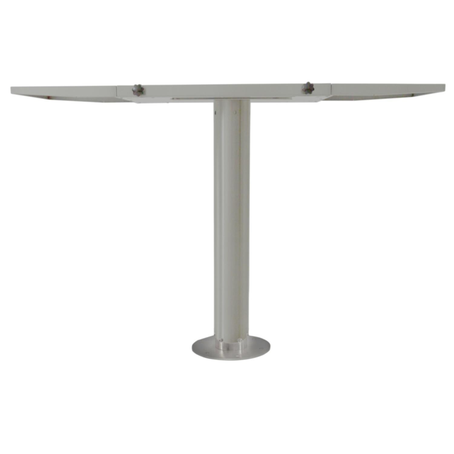 - Pedestal base designed to fit standard marine chair deck plate while side shelves provide valuable workspace