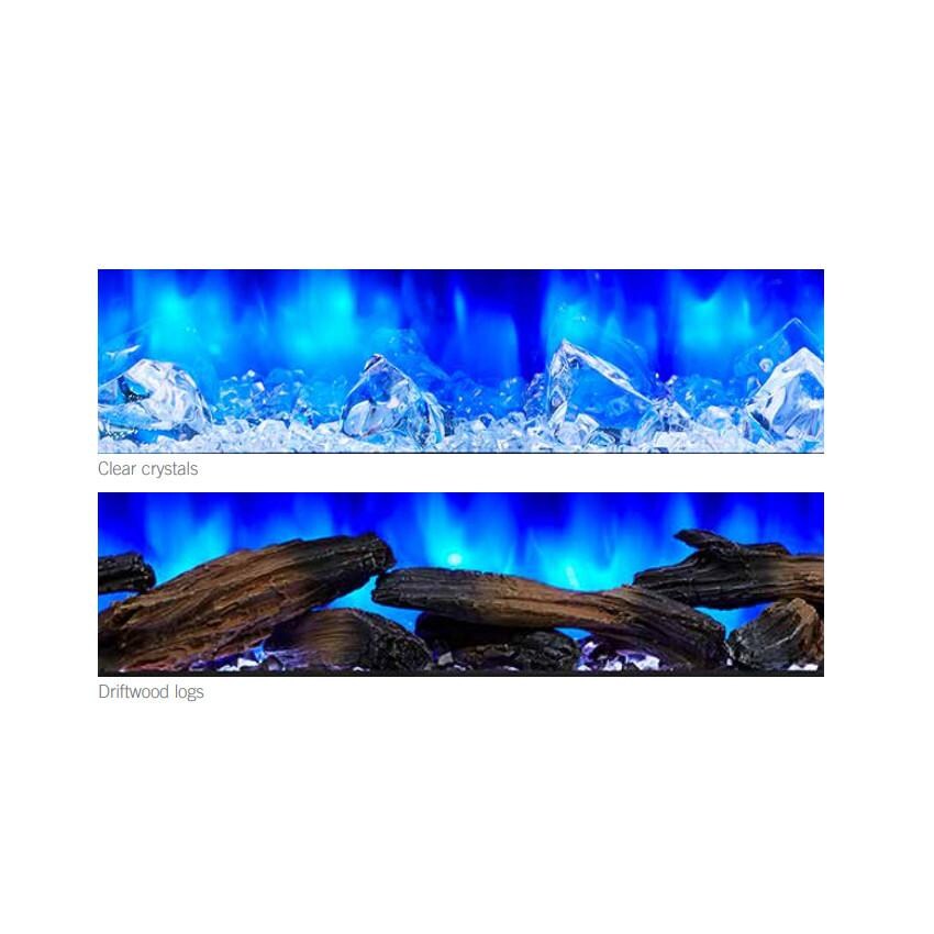 - Features accent lighting, crystal media, and log set with glowing ember bed for added ambiance
