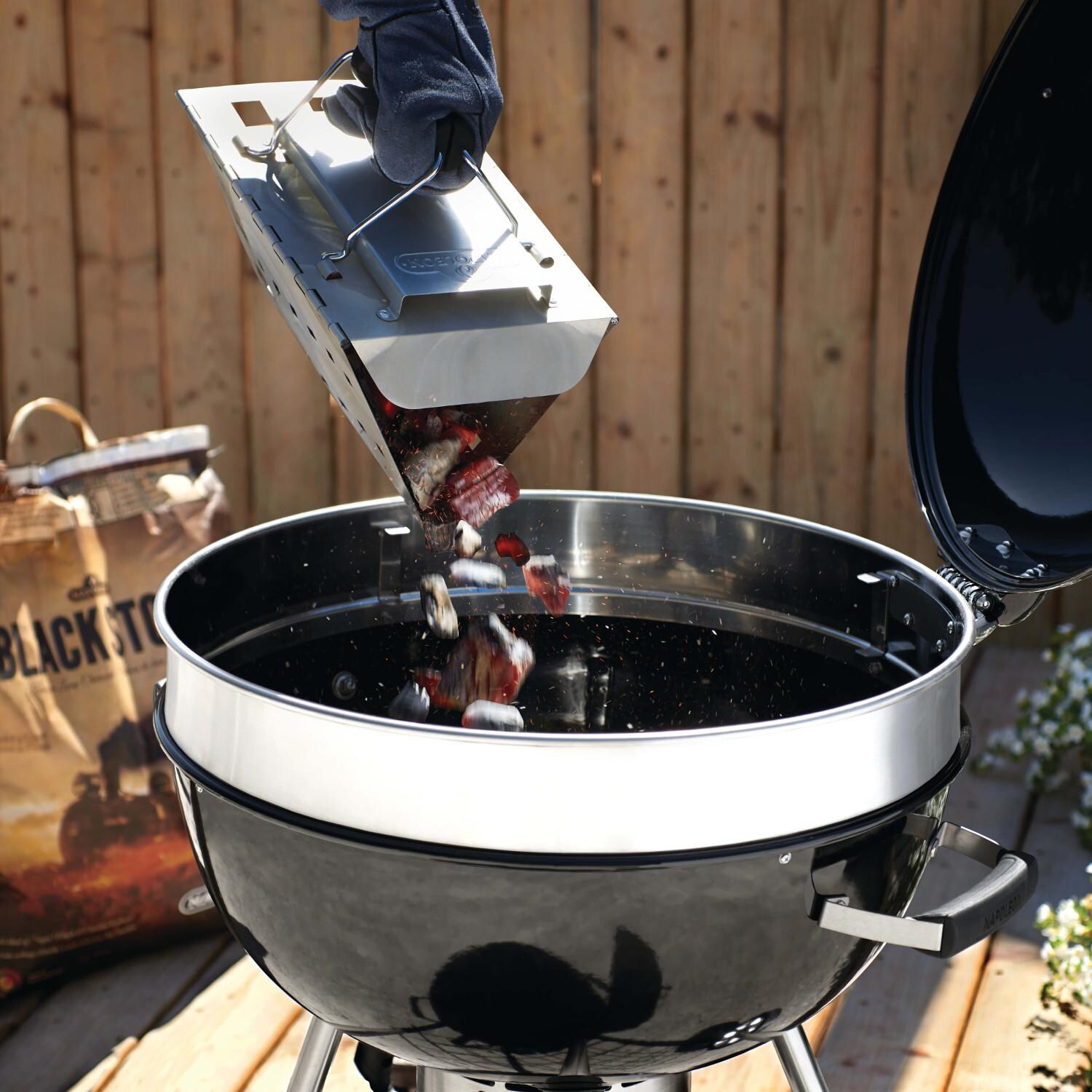 Designed to maximize airflow, allowing the charcoal to be lit 30 percent faster