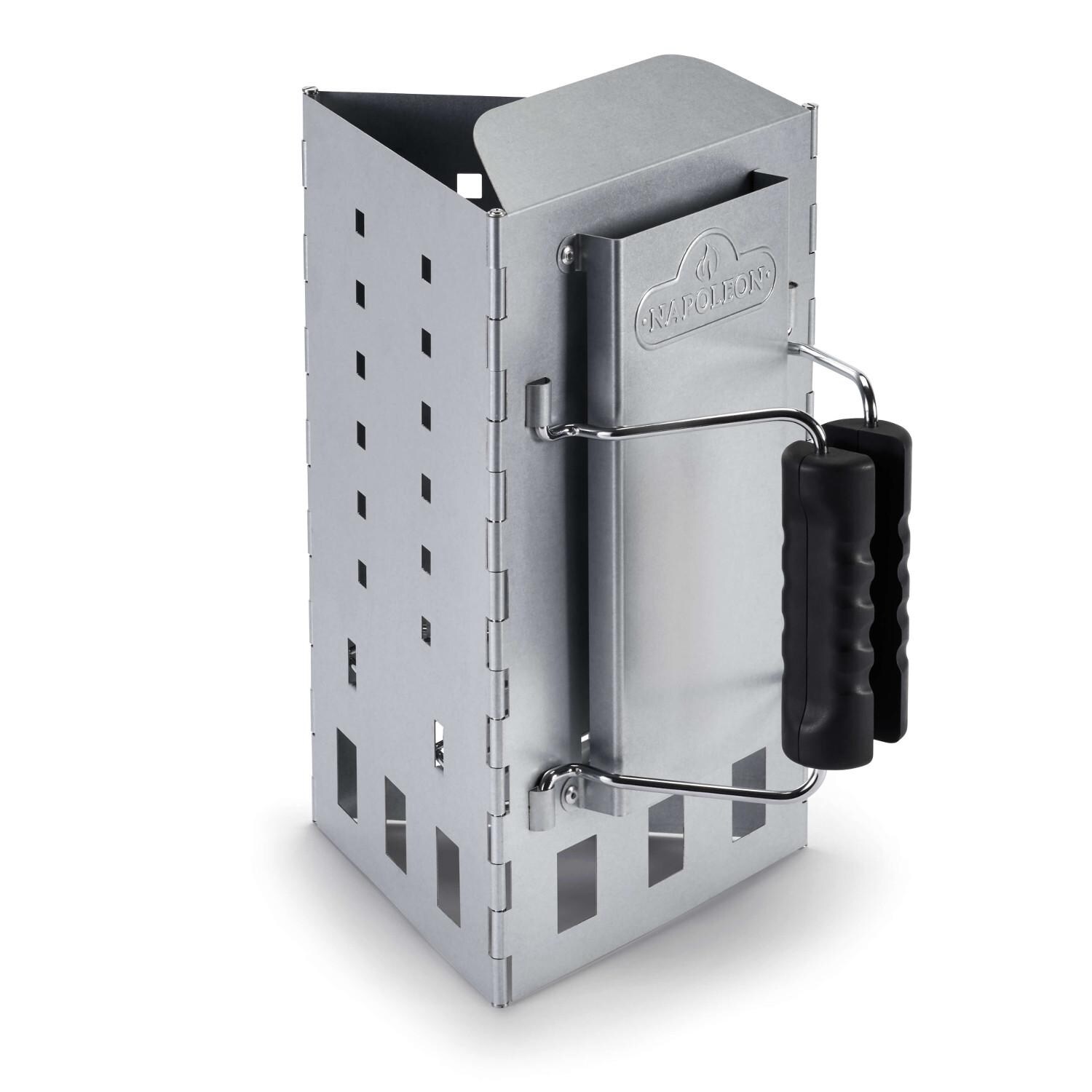 The JETFIRE Chimney Starter by Napoleon helps light charcoal up to 30 percent faster than most starters do, as the design allows for excellent airflow. The design also allows for a more precise charcoal pouring, and helps keep the sparks or heat away from the cook.