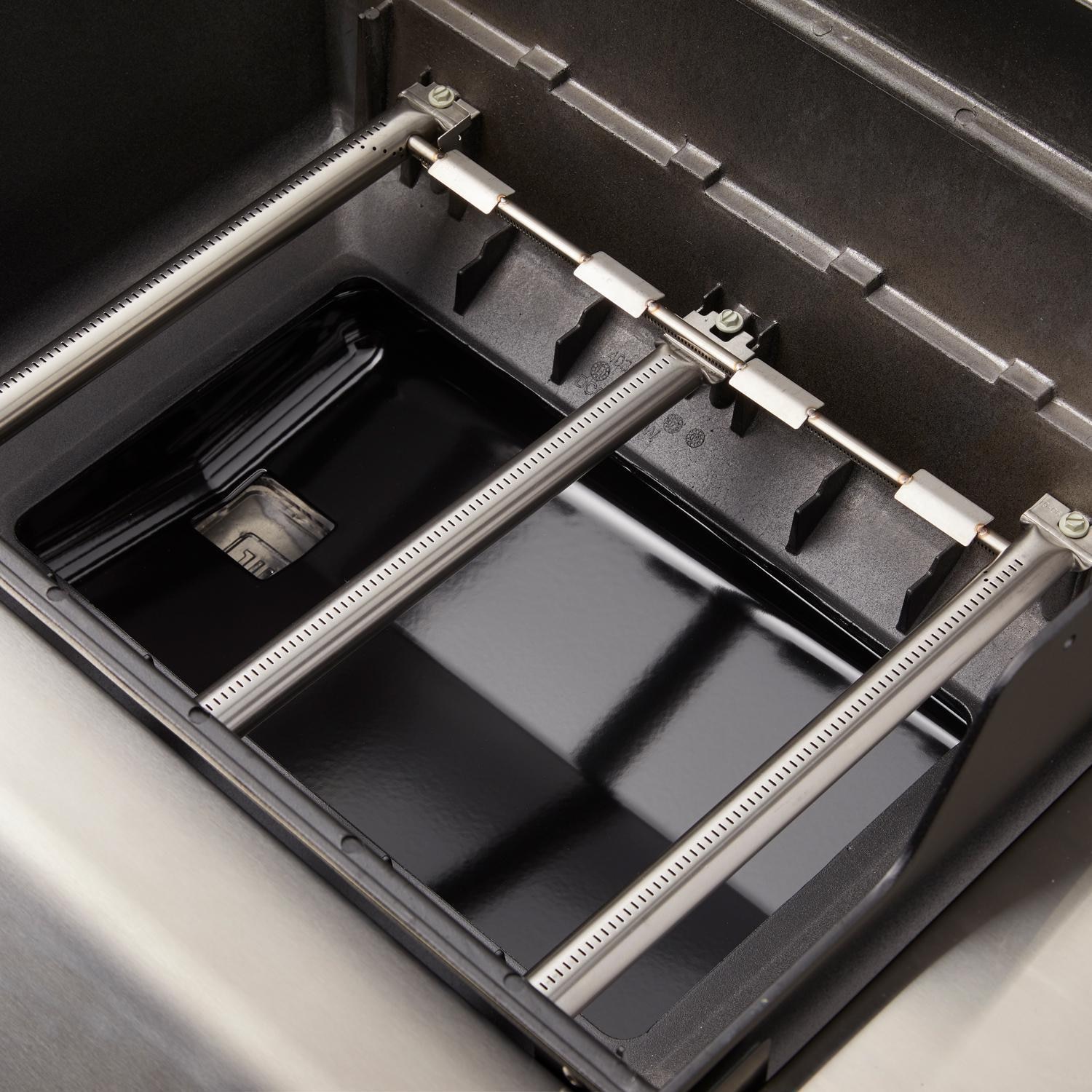 - Stainless steel Flavorizer bars reduce flare-ups and add flavor to your meats