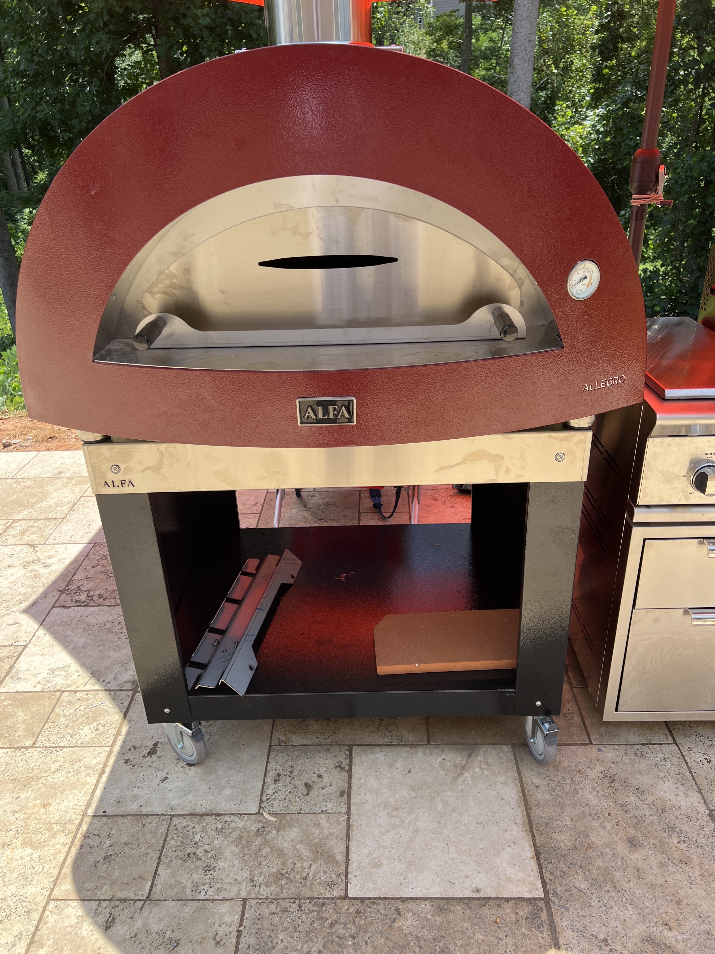 I hava a 39 inch alpha allegro oven. It is barely fit on it. And there is no room for prep. Besides front and back is open. It's not convenient to keep the woods in without getting wet. So I would not recommend this for the bigger ovens