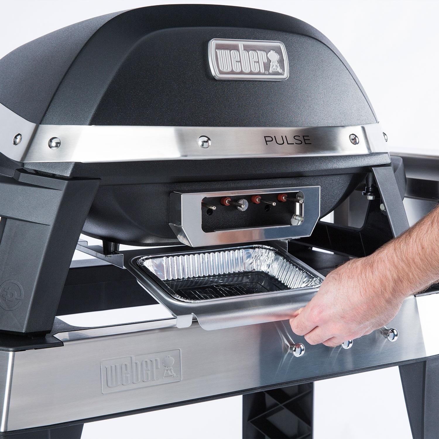 Hi, Karl. Considering that the Weber Pulse has porcelain-coated cast iron grates, a cast iron pan will only provide a little more cooking area.