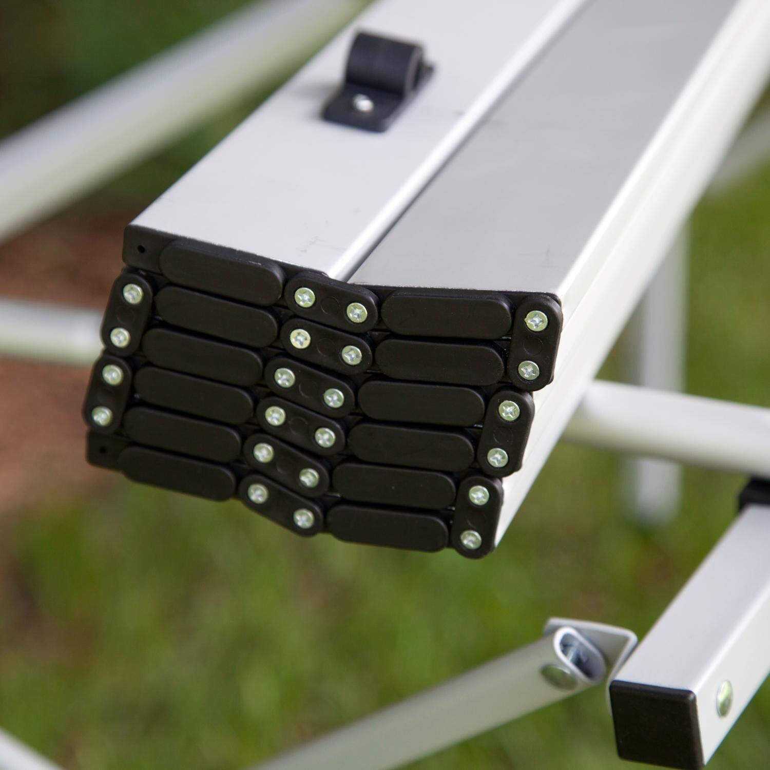 I love how this rolls up to store in our RV. The only improvement would be a shelf under it.