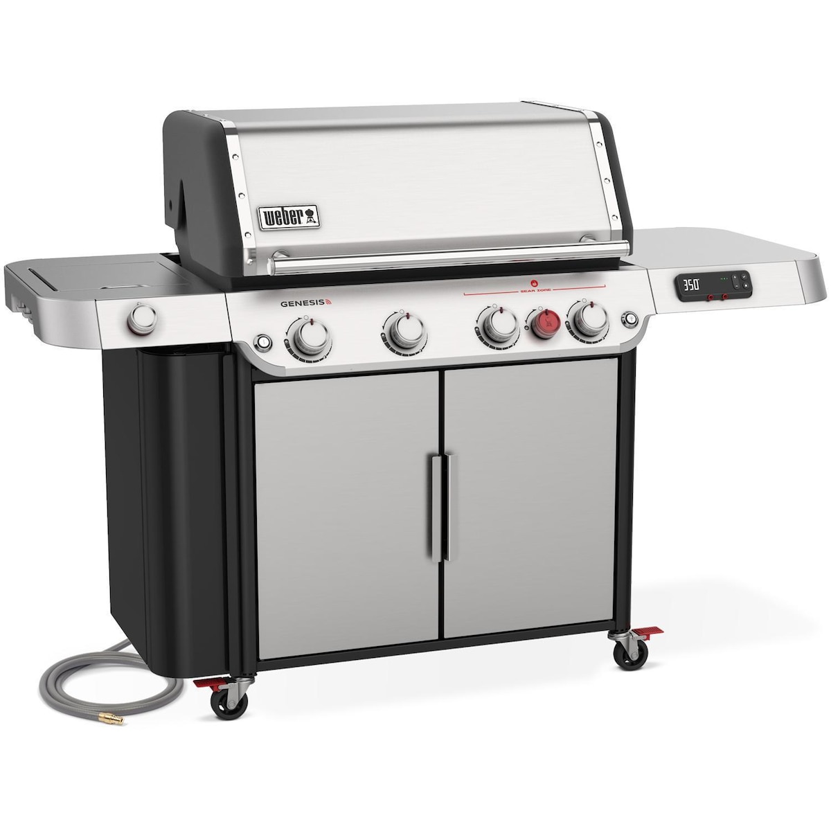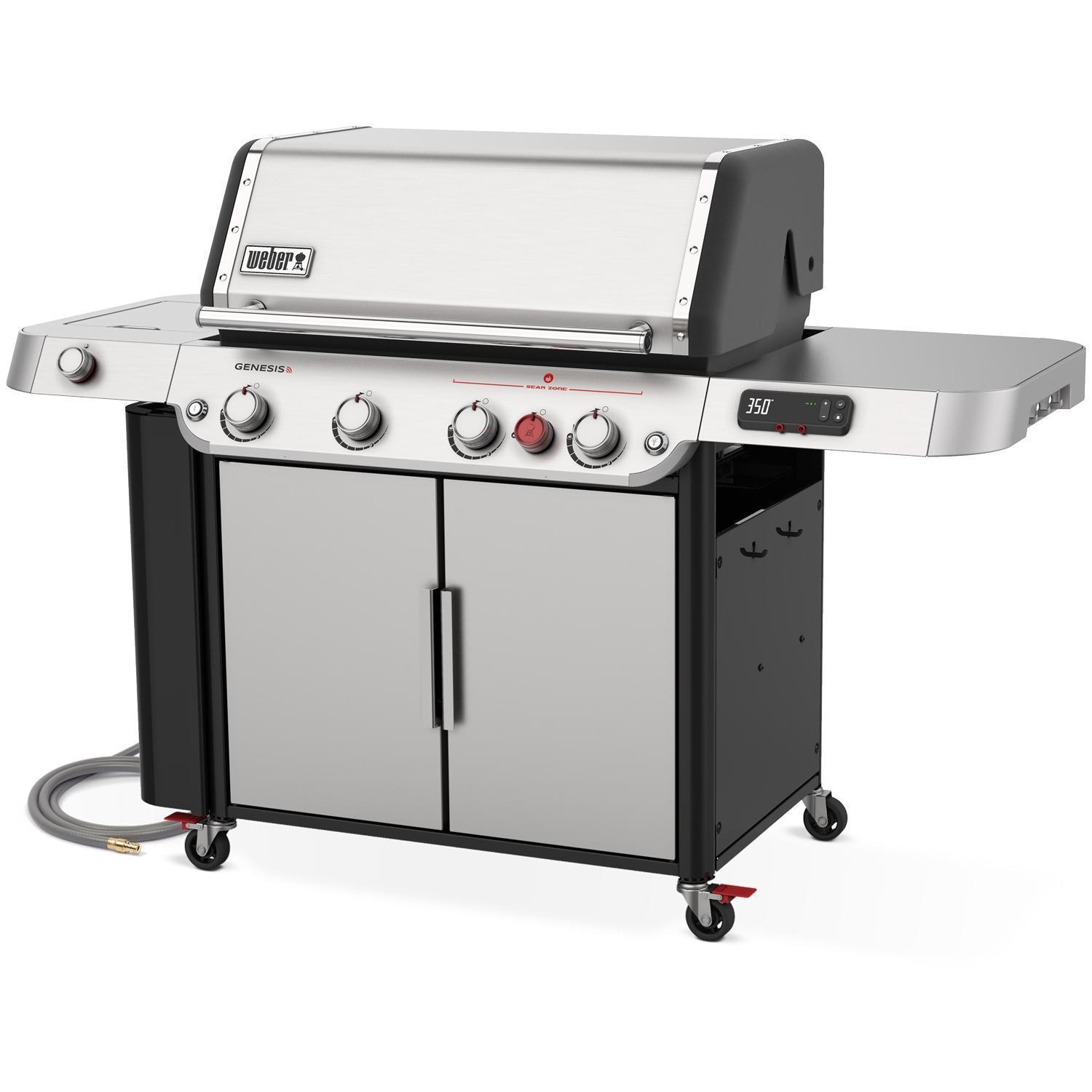 This top-of-the-line GENESIS grill has all the bells and whistles, or should we say lights and burners. A pair of integrated, motion-sensing LED lights in the lid handle illuminates the entire grill surface and side tables when activated, ensuring nighttime never runs you off the grill; remote control knob lights, meanwhile, enhance visibility in the dark and add a modern aesthetic. As for the burners, the Weber GENESIS SPX-435 smart grill includes a handy side burner for sauteing veggies, boiling sides, or heating up sauces while the main grilling area takes care of the heavy lifting. Those 4 main burners feature a proprietary, ported design to produce the most efficient and even flame for consistently precise heat and reliable ignition.
