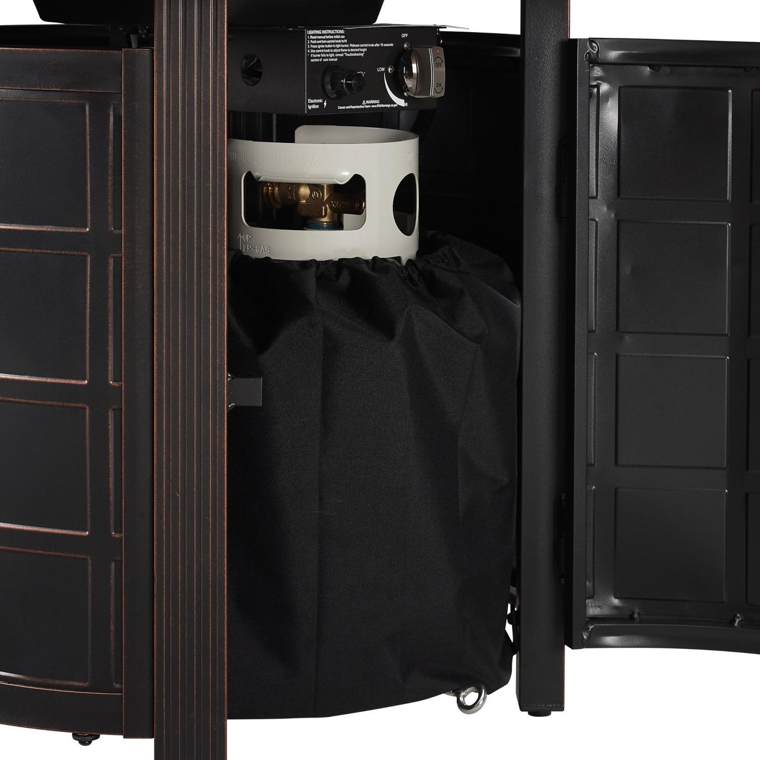 - Clear fire glass and cover included
