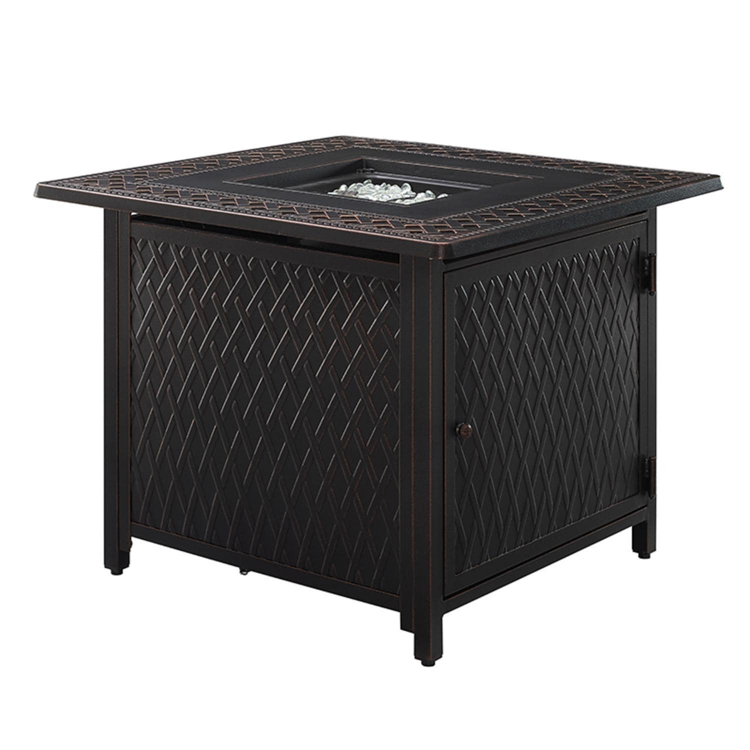 - Clear fire glass and cover included