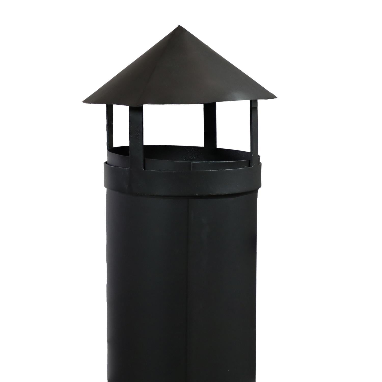 - Flue keeps smoke away by directing it upwards and rain cap protects the fire from rainwater