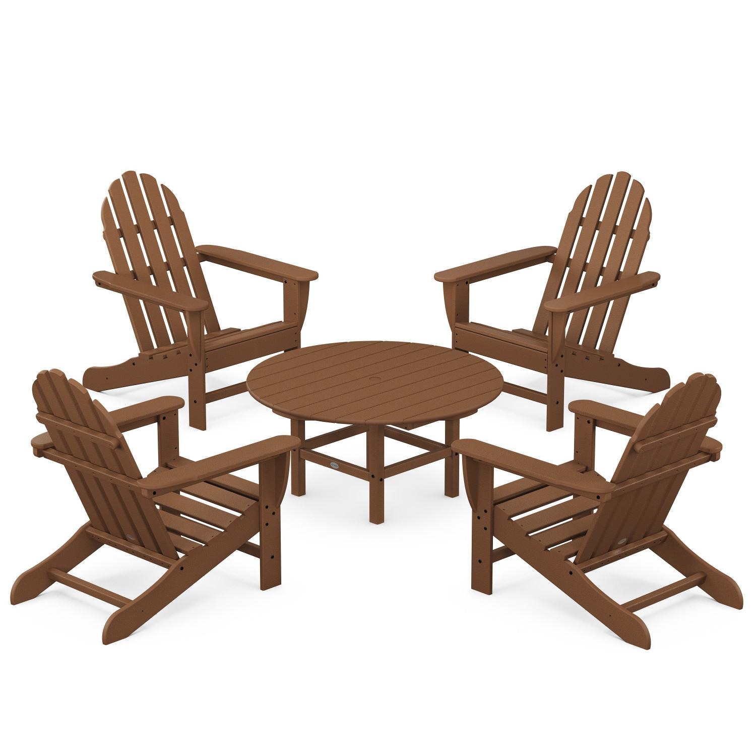 - Includes (4) Classic Adirondack Chairs and (1) Round 38 Conversation Table