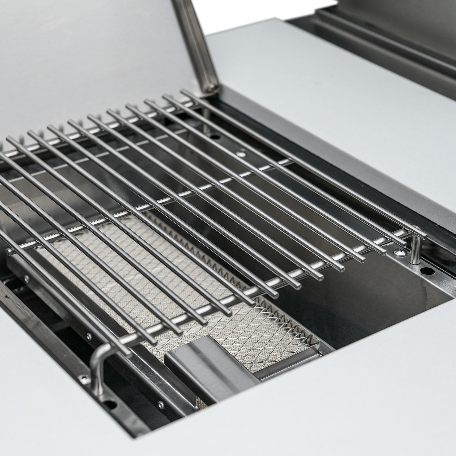 Achieve steakhouse-quality results with the infrared side burner, designed for high-intensity cooking. This burner reaches extreme temperatures, allowing you to sear steaks to perfection, pan-fry delicate foods, or rapidly boil water for side dishes. Expand your cooking capabilities with this versatile, high-performance feature.