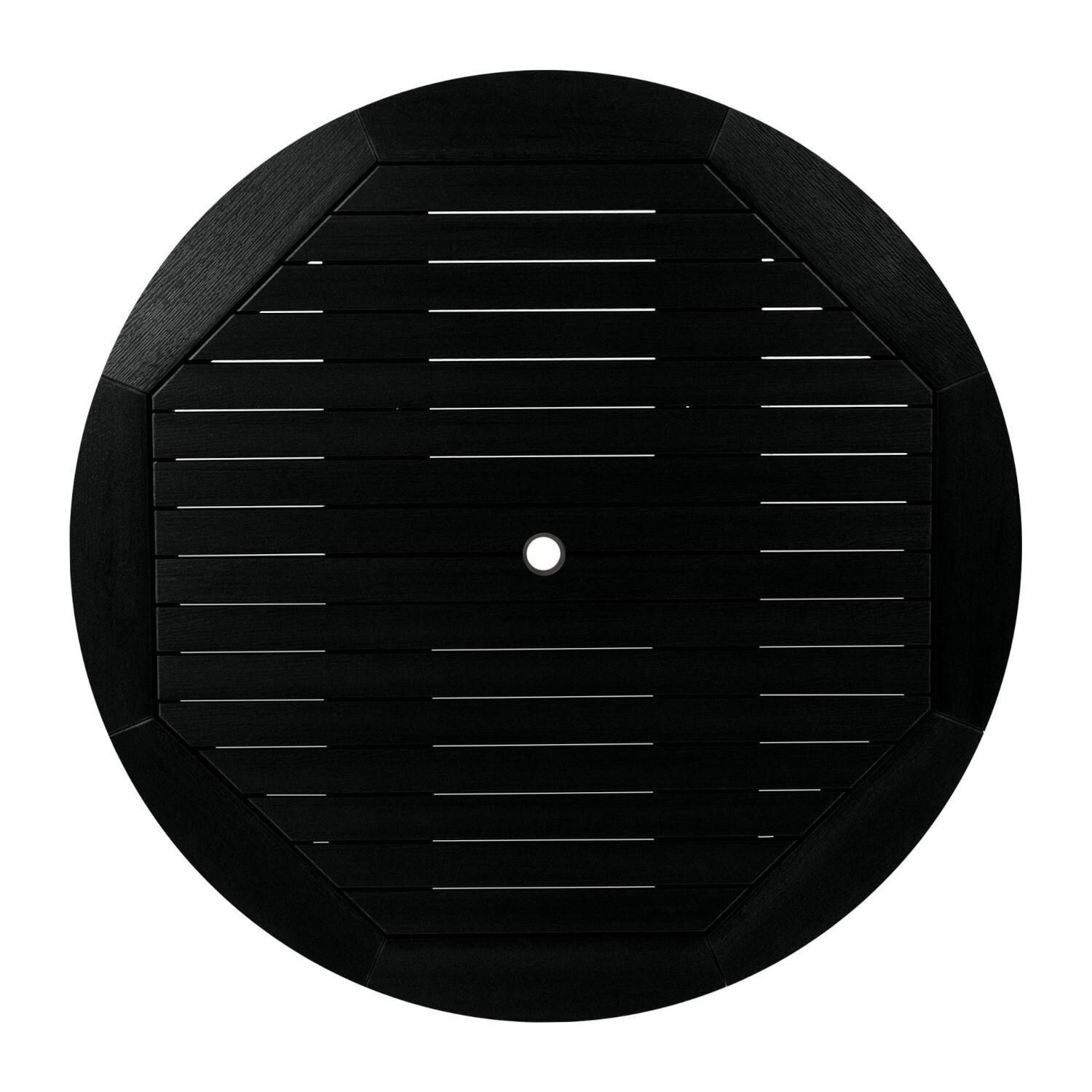 This Elm Pointe Dining Set in a black finish features a 48 inch round dining table in COUNTER height (36 inches tall including umbrella hole) with 4x counter-height armchairs for a sleek seating and dining area. The Elm Pointe Collection's modern, clean lines provide a beautiful look to the chairs that surround the sturdy and well-built table. This is a dining set that your guests will covet. Dining separates can also be purchased to expand your set further.