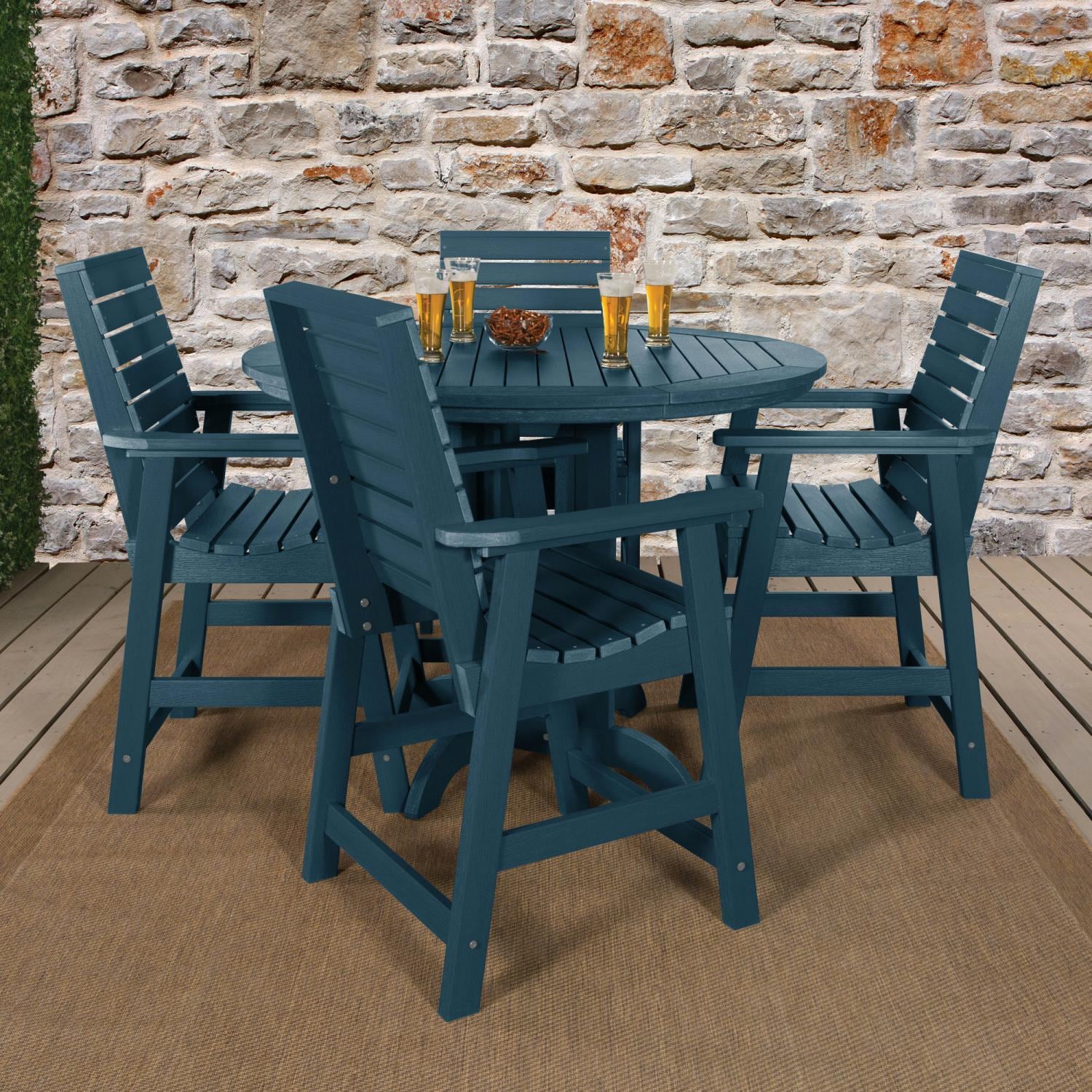 This Elm Pointe Dining Set in a Nantucket blue finish features a 48 inch round dining table in COUNTER height (36 inches tall including umbrella hole) with 4x counter-height armchairs for a sleek seating and dining area. The Elm Pointe Collection's modern, clean lines provide a beautiful look to the chairs that surround the sturdy and well-built table. This is a dining set that your guests will covet. Dining separates can also be purchased to expand your set further.