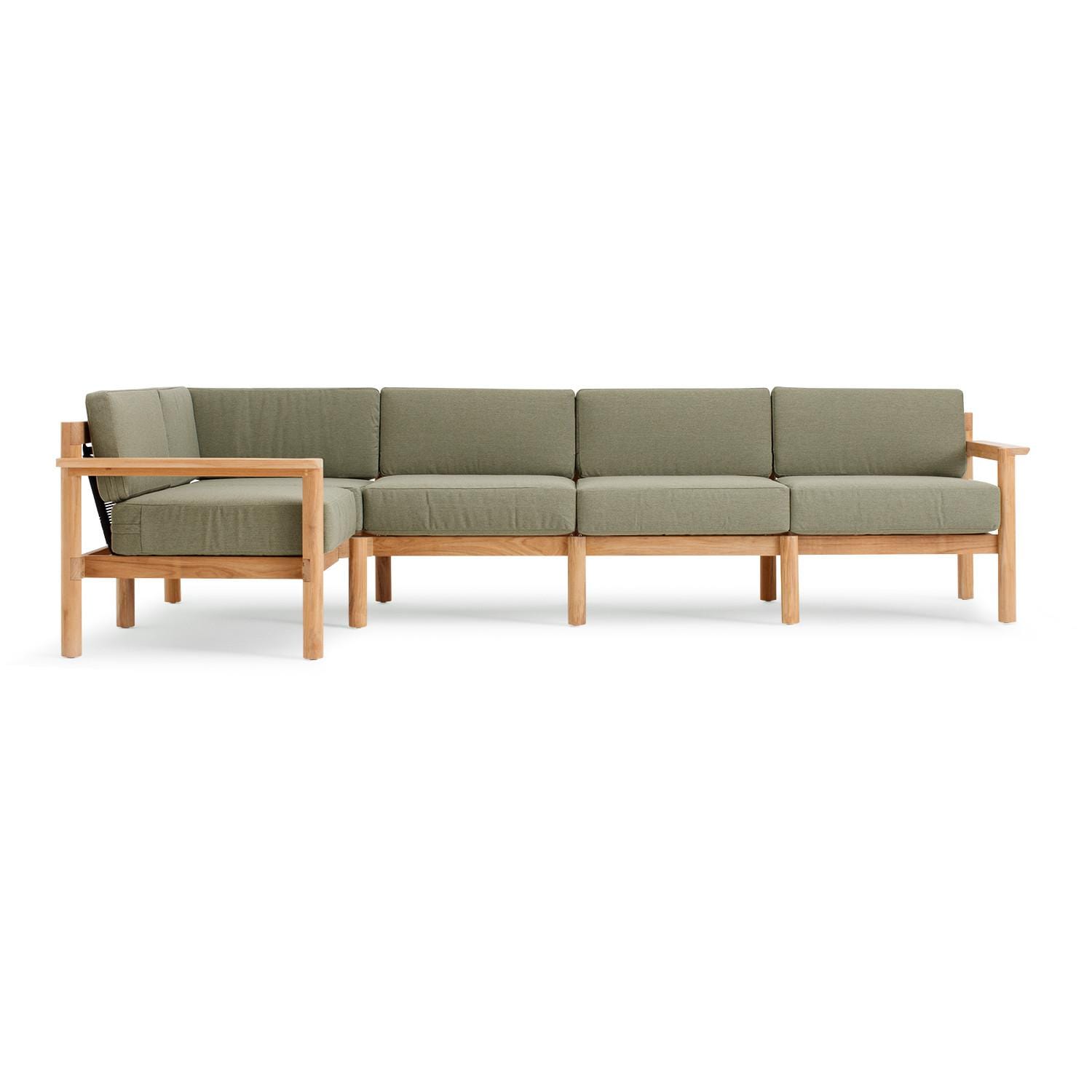 Our family is pleased with this sectional. I love the quality of the teak and the sunbrella fabric. The green color is subtle but unique. I can't speak to assembly because I hired somebody to assemble it. It took him about 2 hours- I think it would have taken me longer. My only issues with the sectional are: 1) I wish the cushions were a little more comfortable/cushioned. I think some more throw pillows will help that. and 2) the back cushions and arm cushions come out of place when my kids are jumping all over. Easily put back into place, so a minor complaint.
