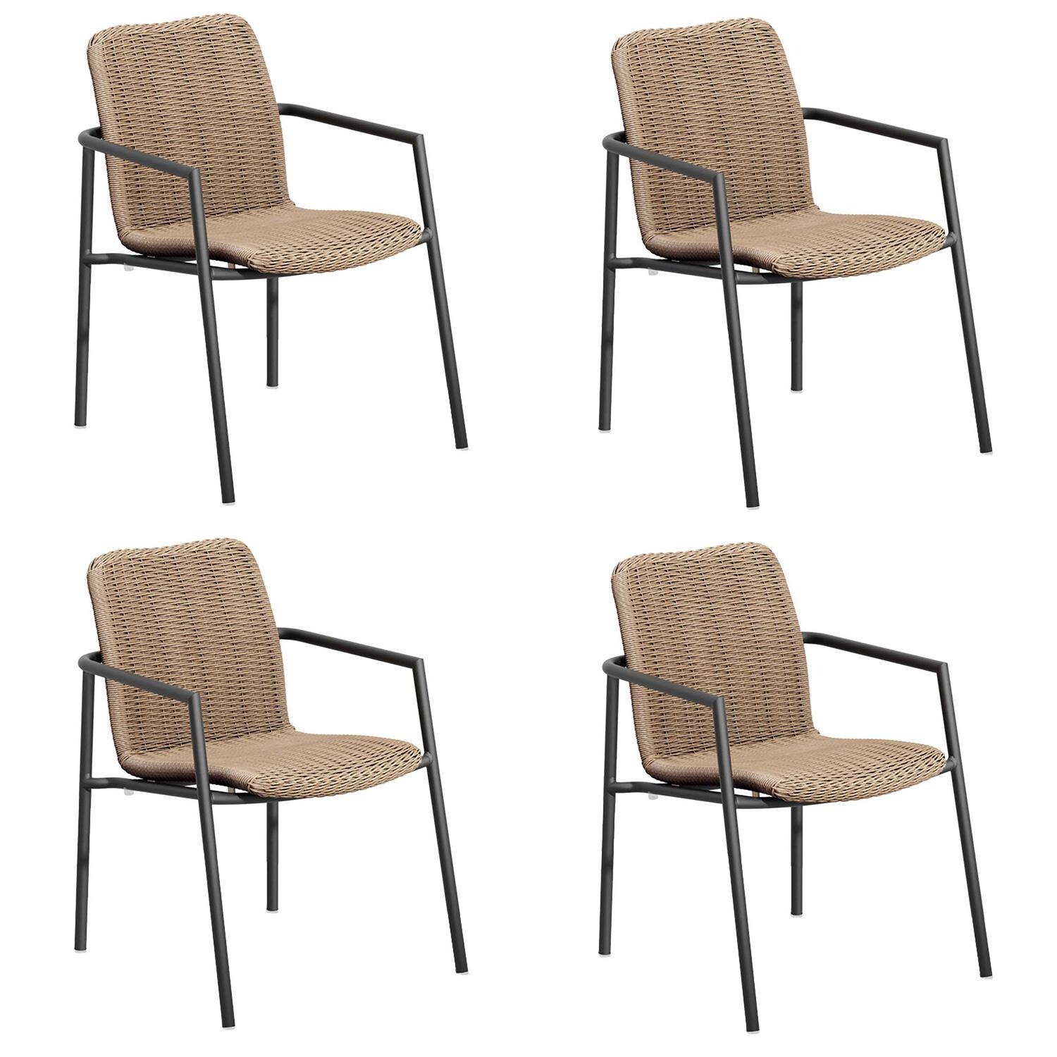 - Chairs feature oversized seats, curved back slats, and waterfall fronts