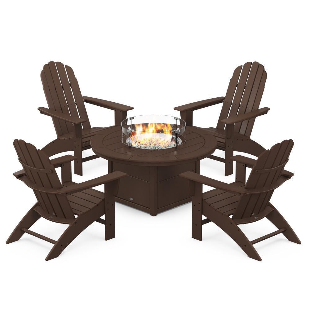 - Includes (4) Vineyard Curveback Adirondack Chairs, (1) Round 48 Fire Pit Table, and (1) Fire Pit Table Cover