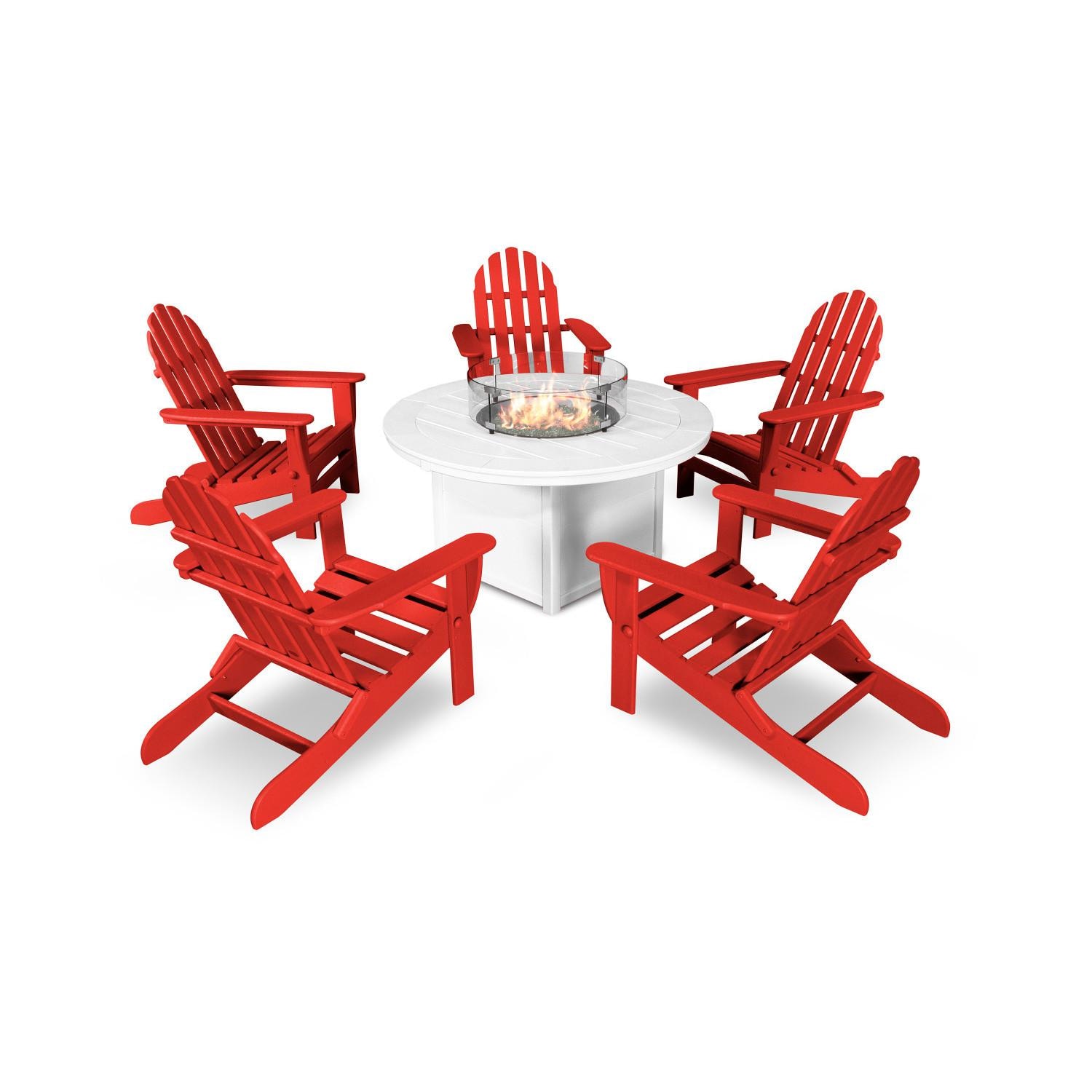 - Includes (5) Vineyard Adirondack Chairs, (1) Round 48 Fire Pit Table, and (1) Fire Pit Table Cover